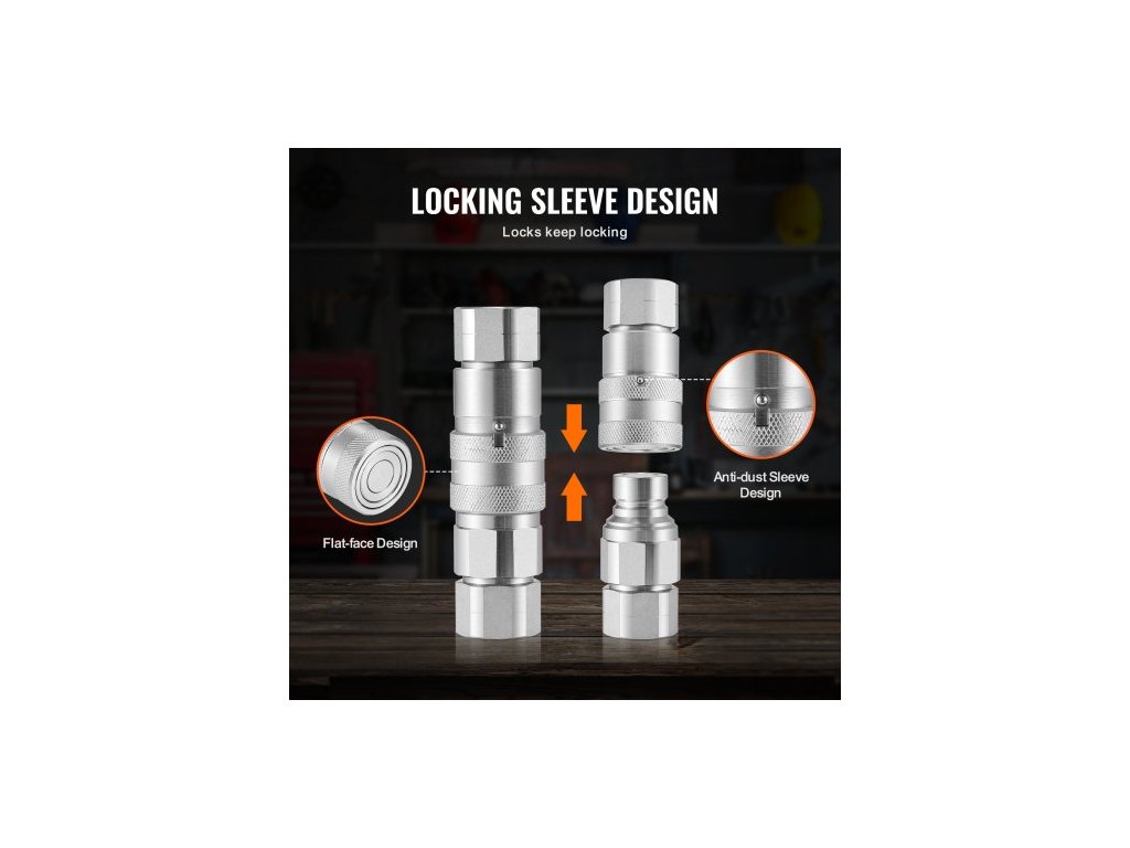 Hydraulické spojky s plochým čelem 1/2", hydraulické rychlospojky pro smykem řízené nakladače 1/2" NPT se 4 protiprachovými krytkami (ISO16028)