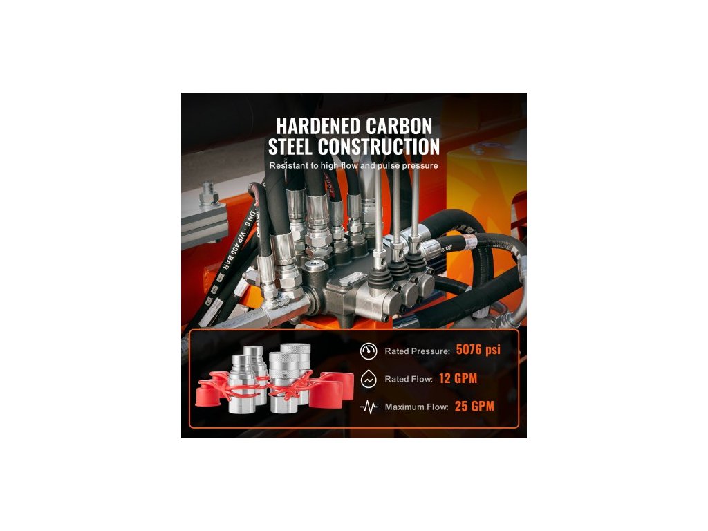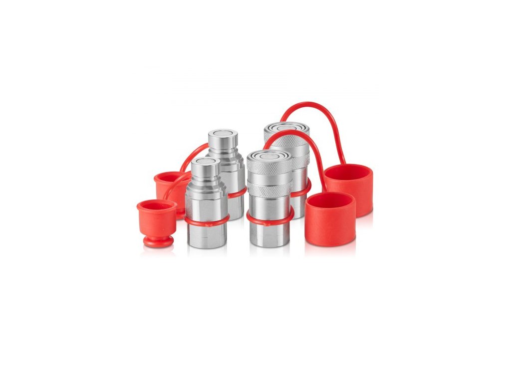 Hydraulické spojky 1/2" s plochým čelem, hydraulické rychlospojky pro smykem řízené nakladače 1/2" NPT se 4 protiprachovými krytkami (ISO16028)