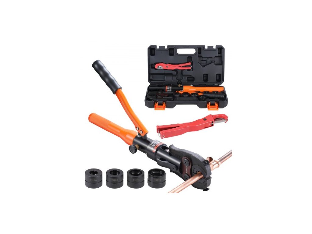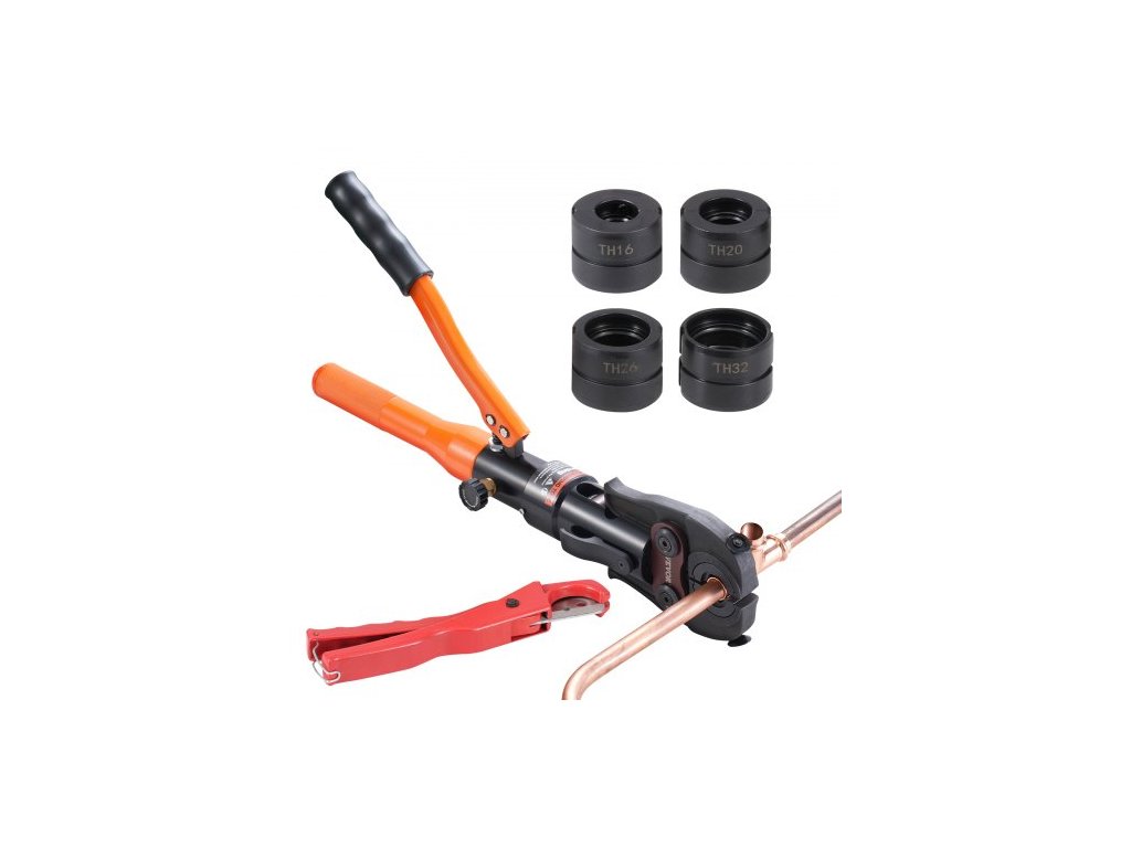 Hydraulický krimpovací nástroj na měděné tvarovky, lisovací kleště s rychlovýměnnými čelistmi TH16, TH20, TH26, TH32, lisovací sada otočná o 360° pro stísněné prostory, T-kusy s hydraulickým pohonem