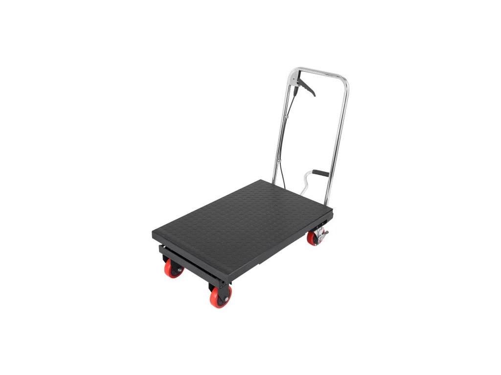 Hydraulický zvedací vozík , nosnost 227 kg, výška zdvihu 74 cm, manuální zvedací stůl s jedním nůžkovým pohonem, 4 kolečky a protiskluzovou podložkou, hydraulický nůžkový vozík pro manipulaci s materiálem, černý