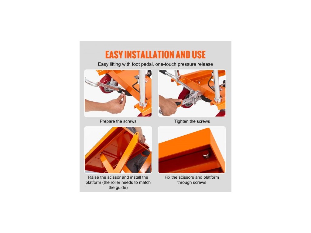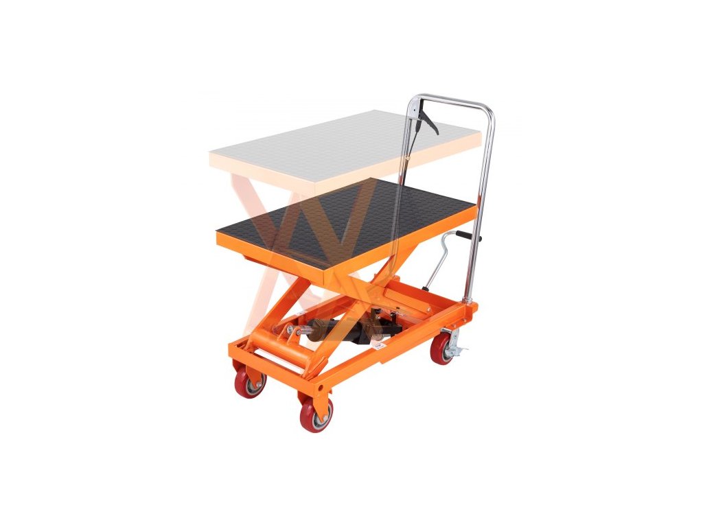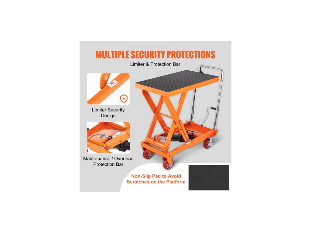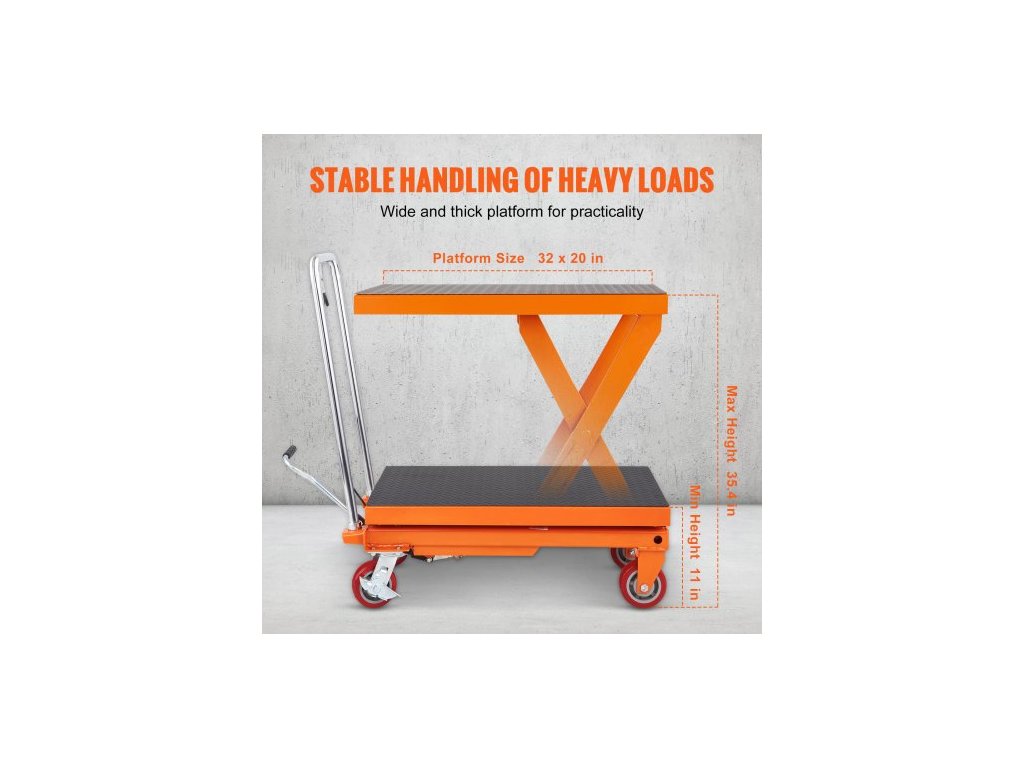 Hydraulický zvedací vozík , nosnost 516 kg, výška zdvihu 94,5 cm, manuální nůžkový zvedací stůl se 4 kolečky a protiskluzovou podložkou, hydraulický nůžkový vozík pro manipulaci s materiálem a jeho přepravu