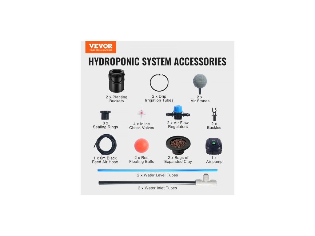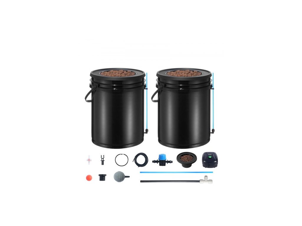 Hydroponický pěstební systém DWC, hydroponický pěstební systém s horní sadou pro zavlažování, hluboká voda, 2 kbelíky o objemu 5 galonů, se vzduchovým čerpadlem, vzduchovacími kameny a hladinoměrem pro listovou zeleninu