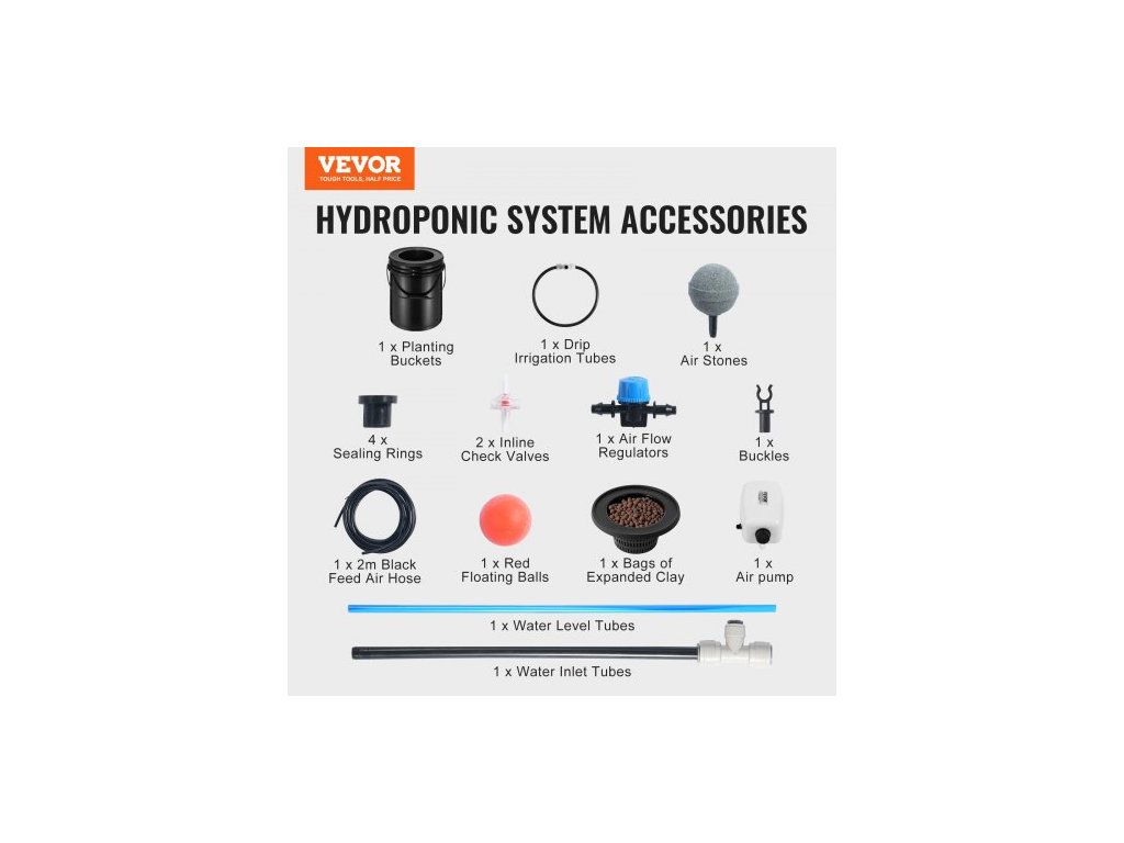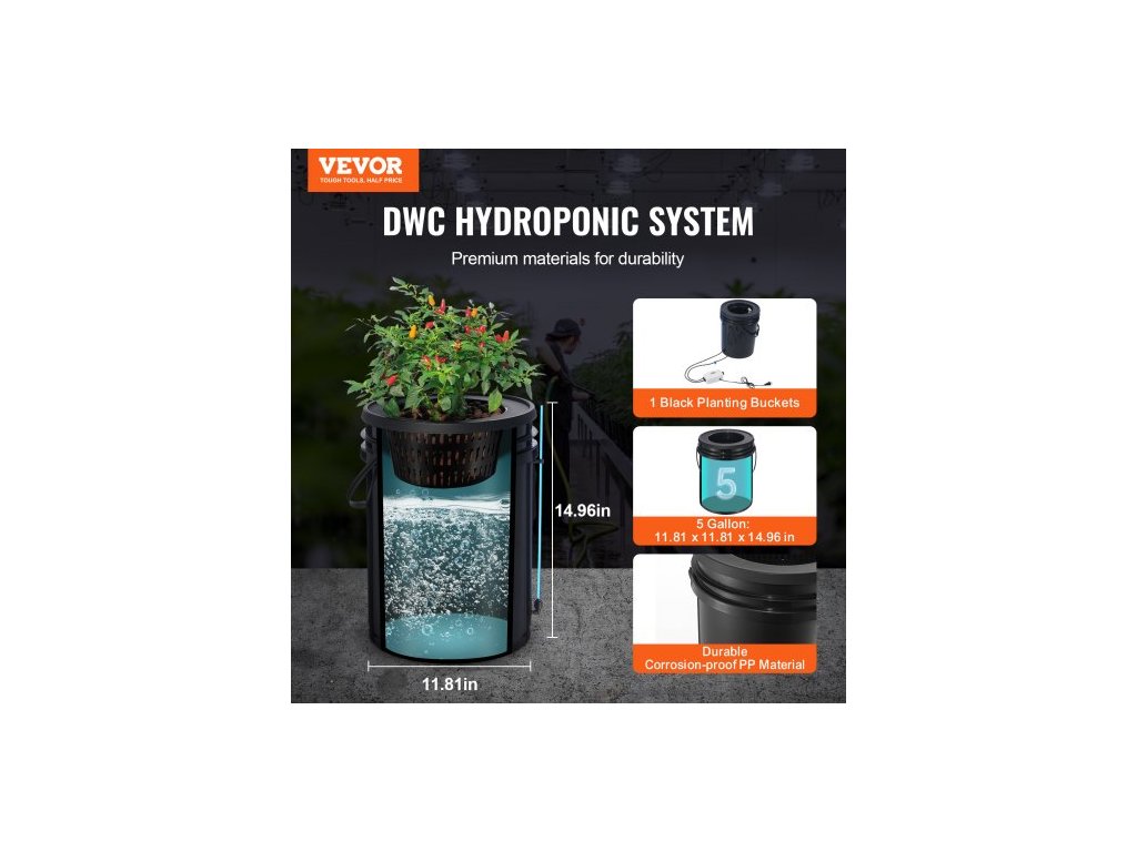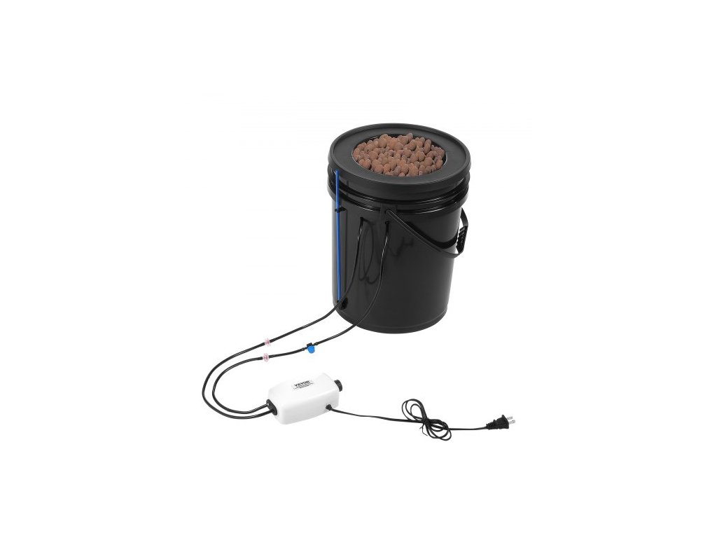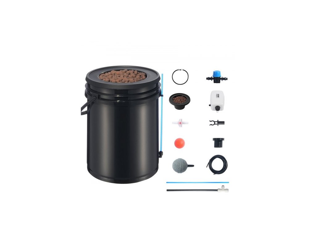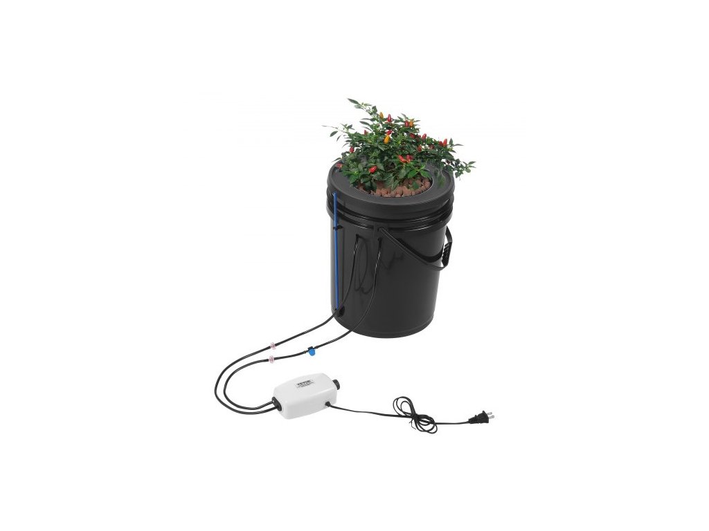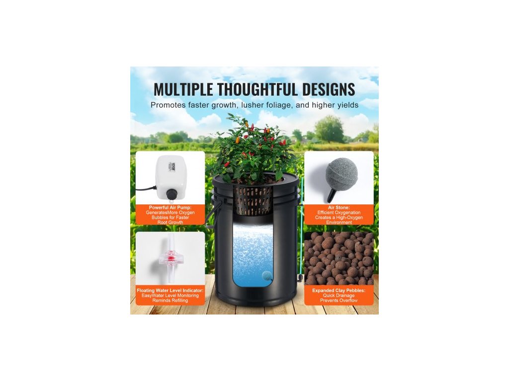 Hydroponický pěstební systém DWC, hydroponický pěstební systém s horním zavlažovacím systémem, 5-galonový hlubokovodní systém s vzduchovým čerpadlem, vzduchovým kamenem a hladinoměrem pro listovou zeleninu (1 kbelík + horní zavlažovací systém)