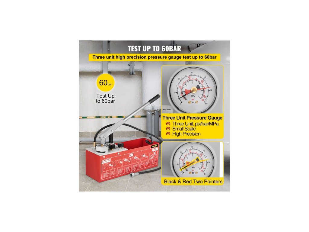 Hydrostatické tlakové čerpadlo , testování do 60 barů/860 psi, nádrž o objemu 12,1 l, sada hydraulického ručního tlakoměru vody s tříjednotkovým manometrem a připojením R 1,27 cm pro tlakové zkoušky kapalin v potrubí