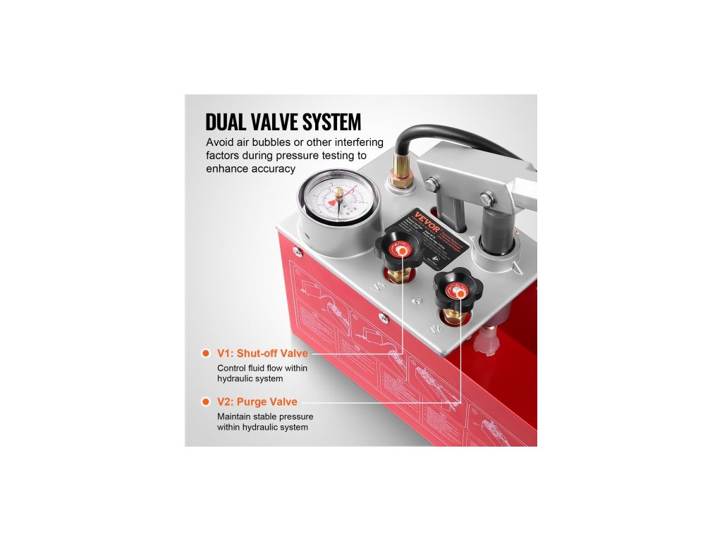 Hydrostatické zkušební čerpadlo , max. 25 barů/362 PSI, sada hydraulického ručního tlakoměru vody s dvojitým ventilem a manometrem, 10l nádrž na vodu, 1,4m hadice s 1,27cm vnějším závitovým konektorem pro potrubí
