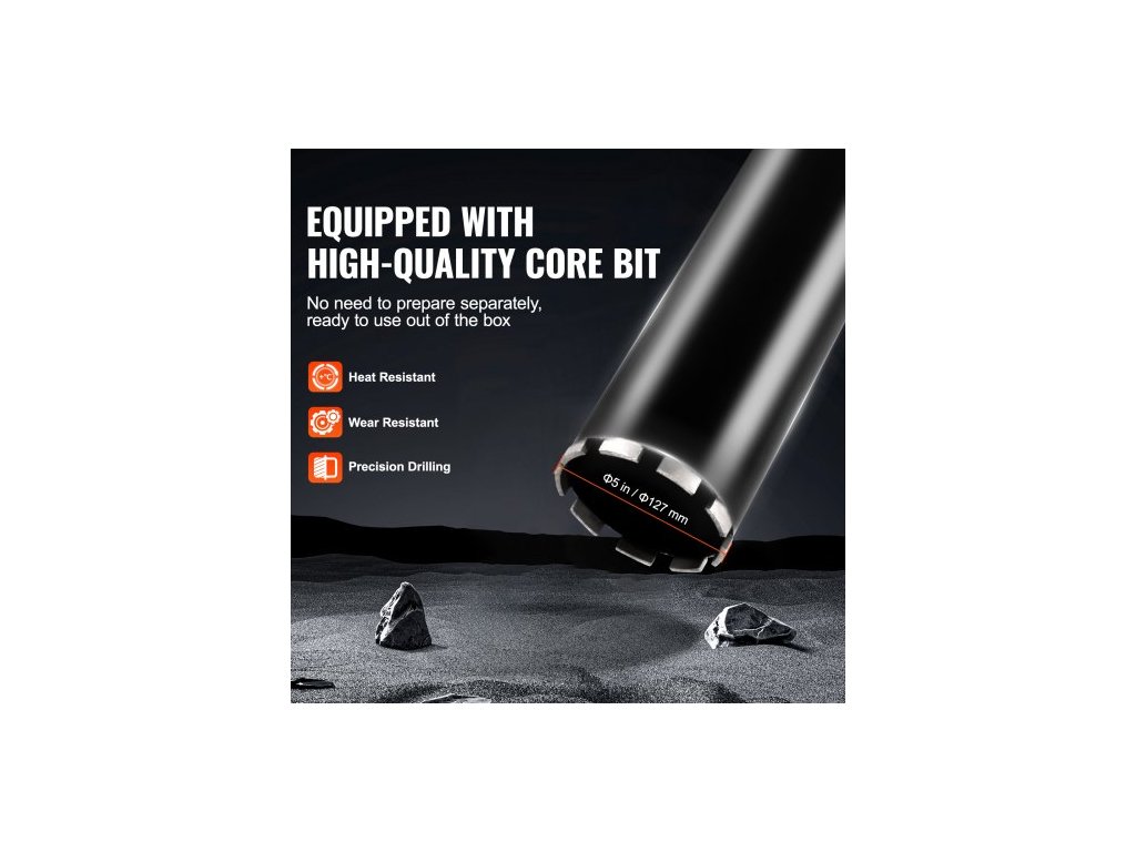 Jádrová vrtačka , průměr 2,03–30 cm, diamantová jádrová vrtačka s podstavcem, výkon 3500 W