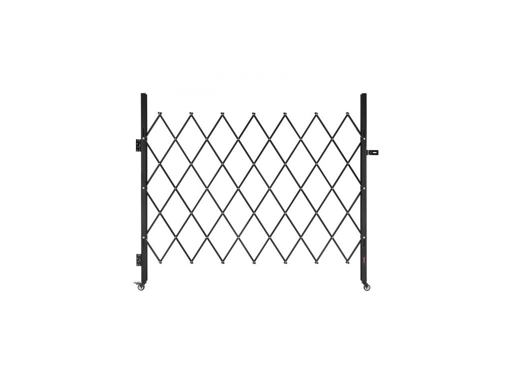 Jednoduchá skládací bezpečnostní brána, uzamykatelná nůžková brána s otočnými kolečky o 360°, venkovní ocelová zatahovací brána s barikádou, pro zabezpečení vstupu, garáže, skladu a bazénu, 180 × 161 cm (Š × V)