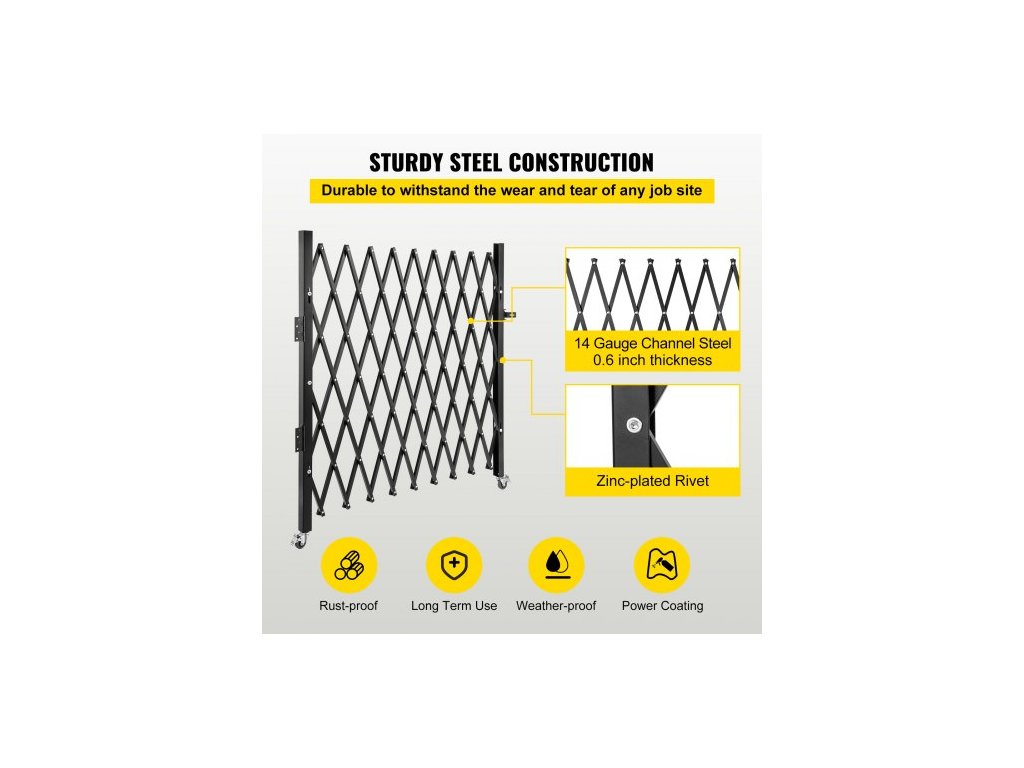 Jednoduchá skládací bezpečnostní brána, 131,00 x 187,96 cm skládací brána, ocelová harmoniková bezpečnostní brána, flexibilní rozšiřující se bezpečnostní brána, 360° rolovací barikádová brána, nůžková brána nebo dveře s visacím zámkem