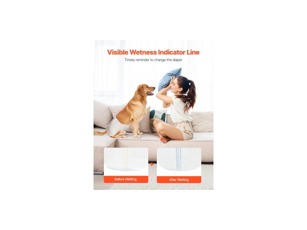 Jednorázové plenky pro psy, super savé plenky pro fenky, 360° nepropustné plenky pro psy s indikátorem vlhkosti pro období říje, výcvik, inkontinenci - M, 144 kusů (2 balení po 72)