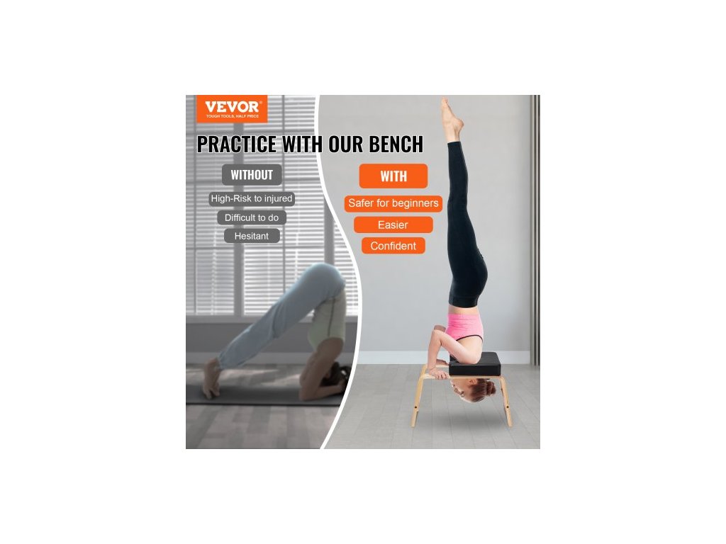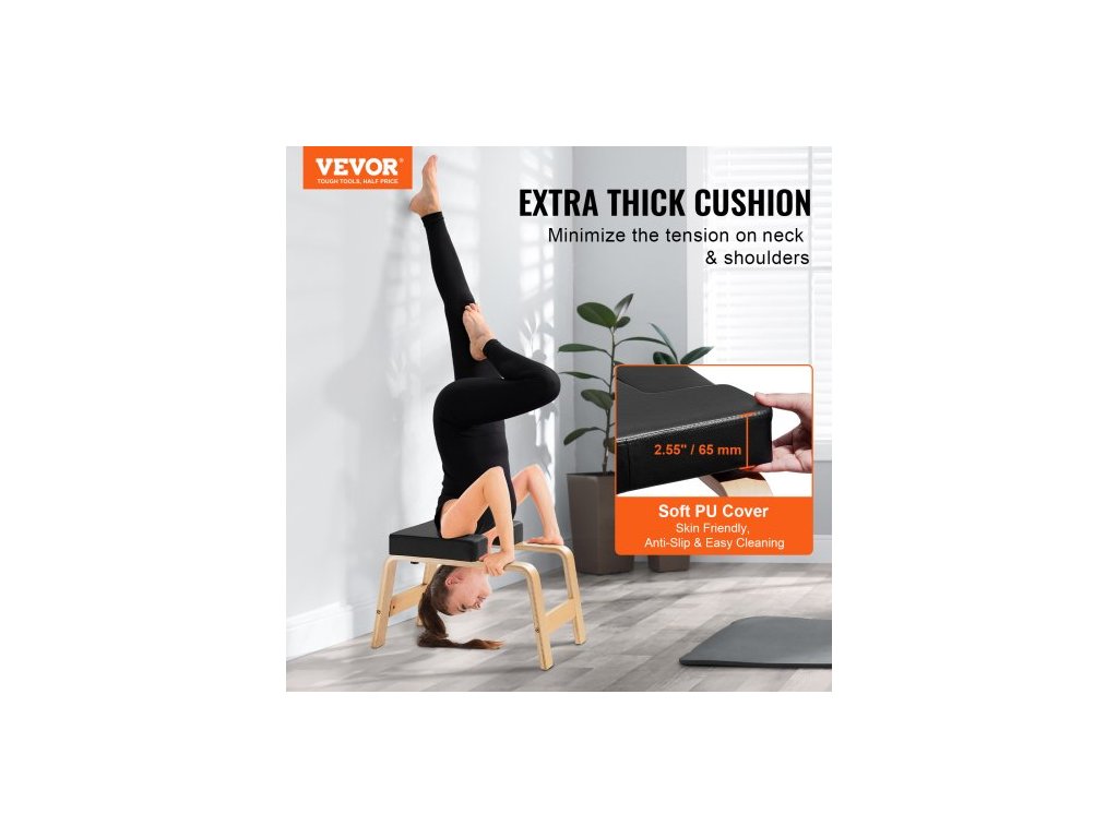 Jógová lavice pro stoj na hlavě, inverzní jógová židle s nosností 136 kg pro rodinnou posilovnu, stoj na hlavě s dřevěným rámem a PU podložkou, jógová židle ve stoje pro silový a rovnováhový trénink, úleva od únavy, černá