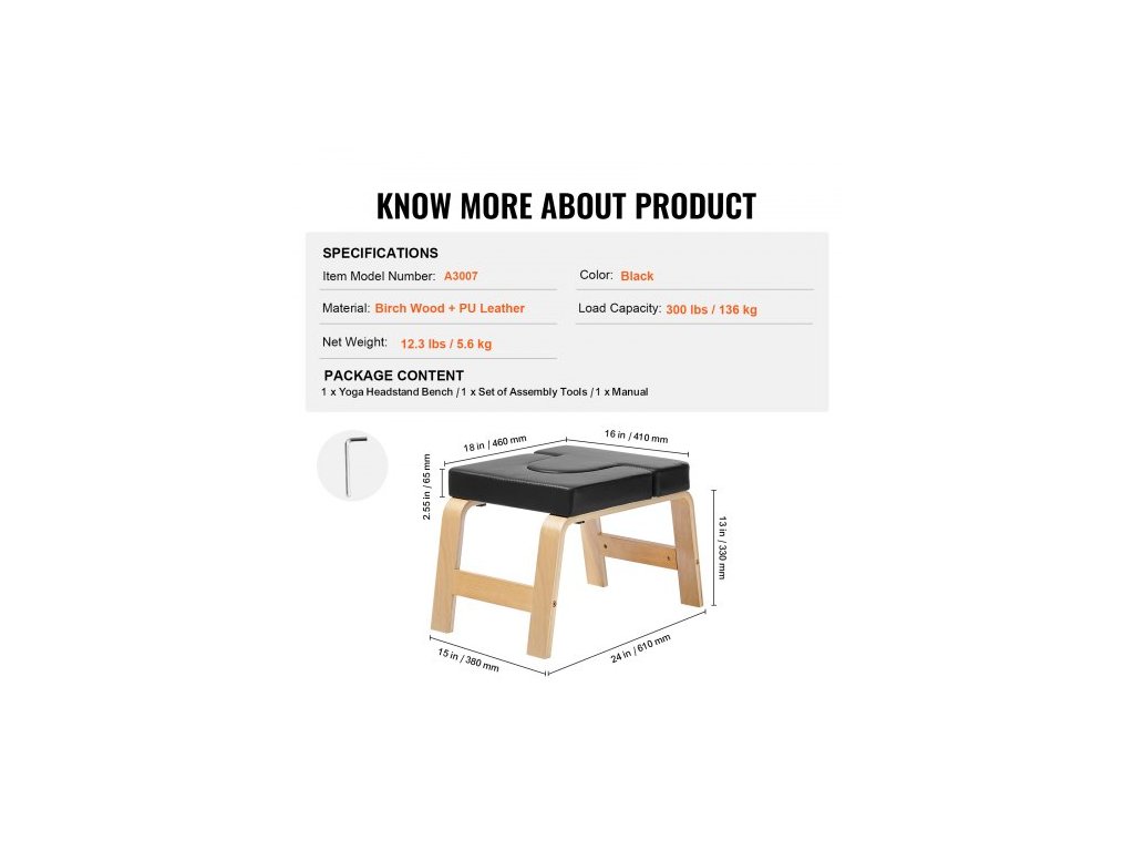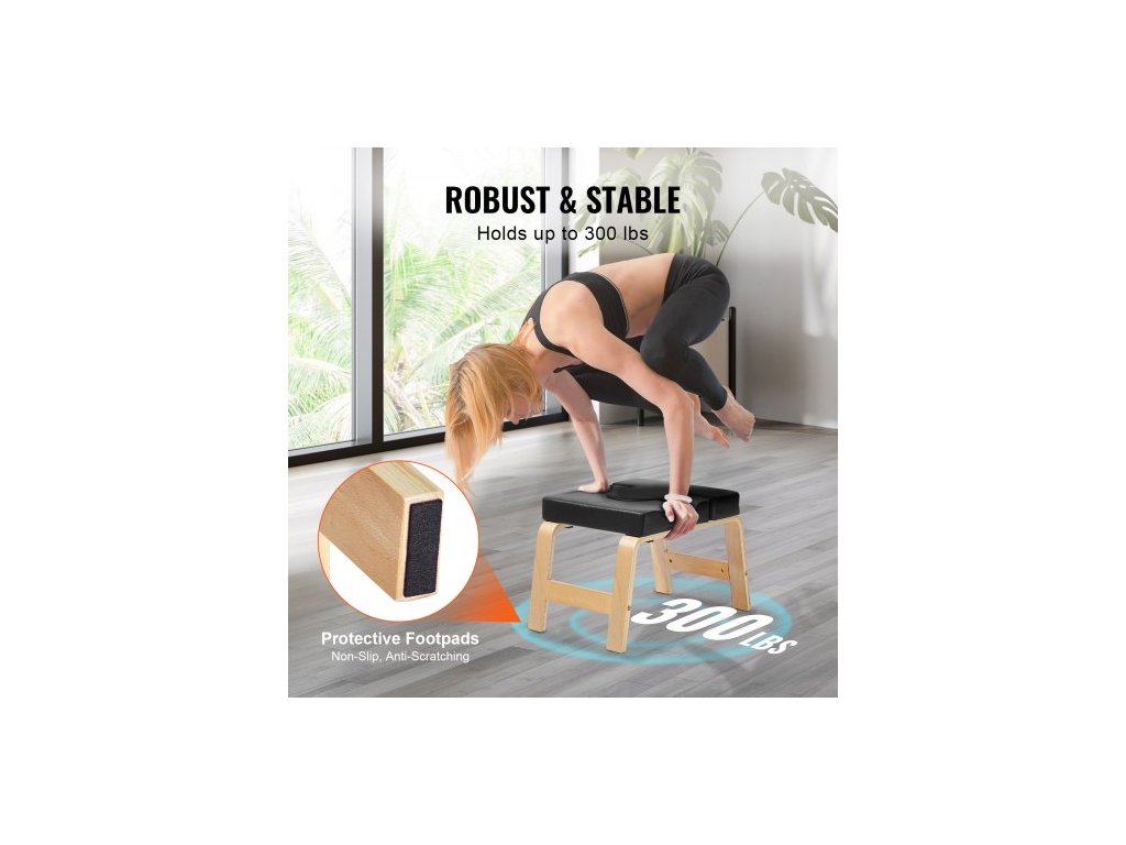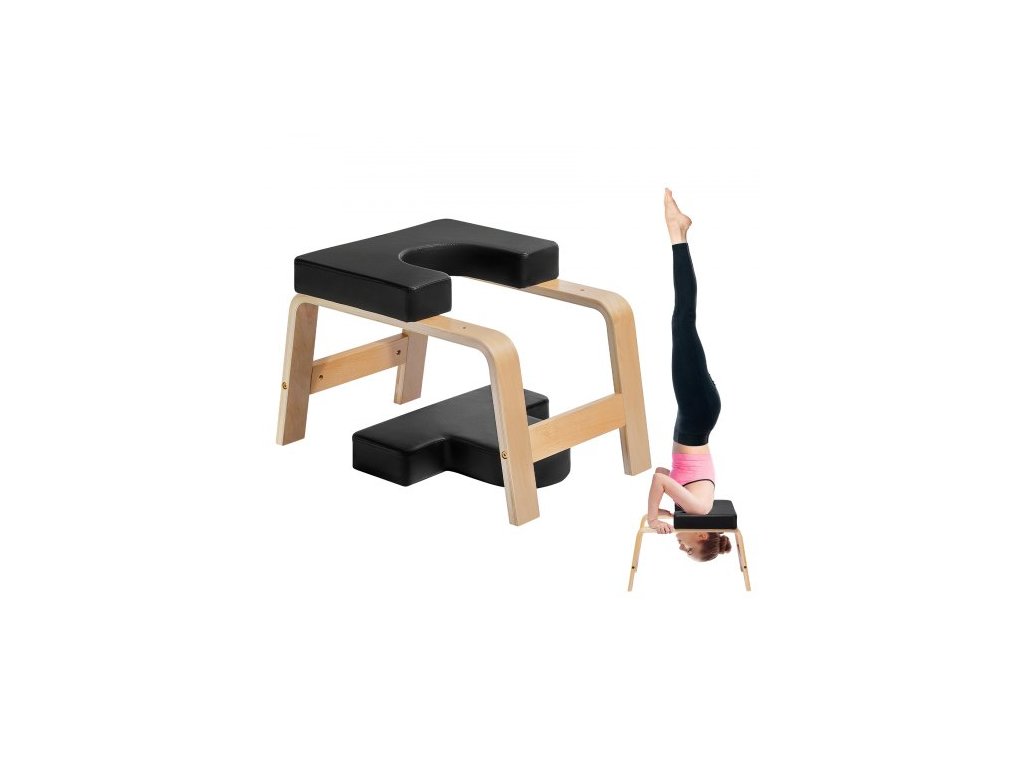 jógová lavice na stoj na hlavě, inverzní jógová židle s nosností 136 kg pro rodinnou posilovnu, stoj na hlavě s dřevěným rámem a PU podložkou, jógová židle ve stoje pro silový a rovnováhový trénink, úleva od únavy, černá