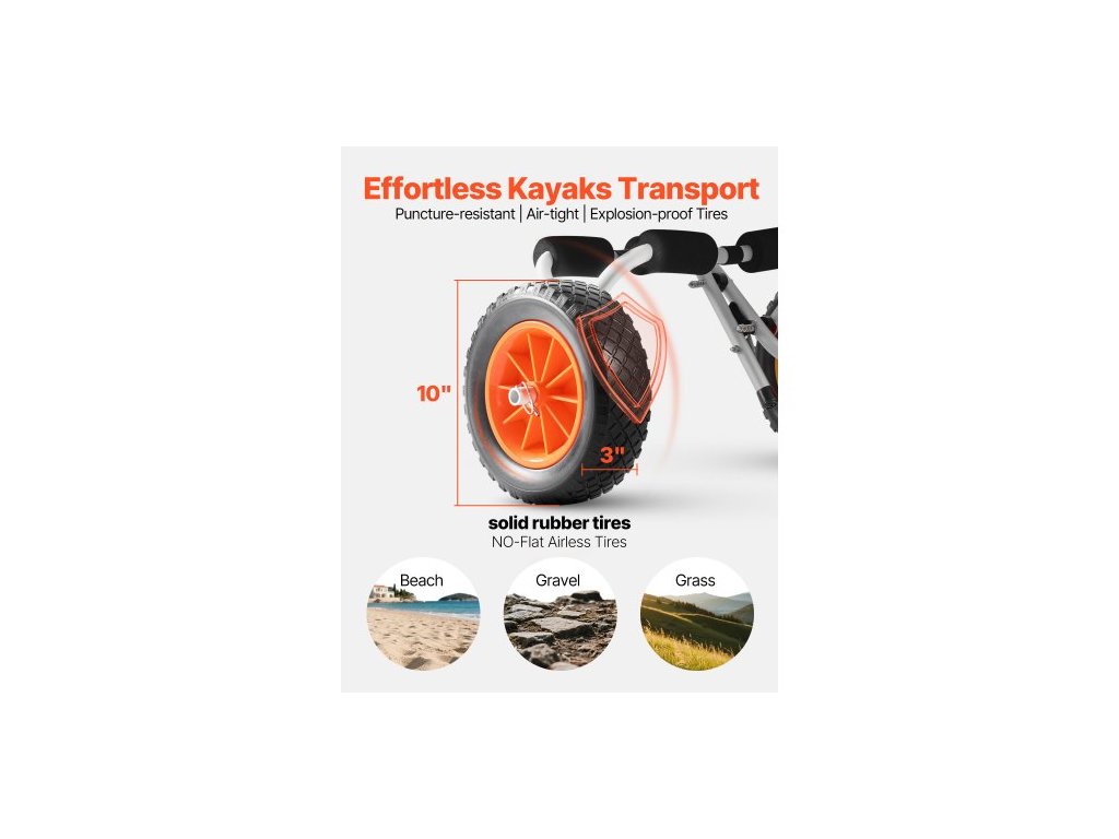 Kajakový vozík , nosnost 90 kg, skládací kajakový vozík s 25,4 cm plnými gumovými pneumatikami a 1 ráčnovým popruhem, vozík na paddleboardy pro přepravu kajaků, kánoí, paddleboardů, plováků a lodí