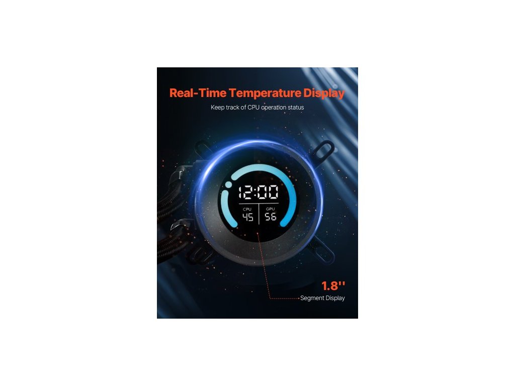 Kapalinový chladič CPU, vodní chladič CPU AIO - 120mm ventilátory PWN, čerpadlo, 1,8" displej, max. 2200 ot./min. ventilátor CPU, efektivní černý vodní chladič pro Intel 115X/1366/2011/1700/1200, AMD AM4/AM5
