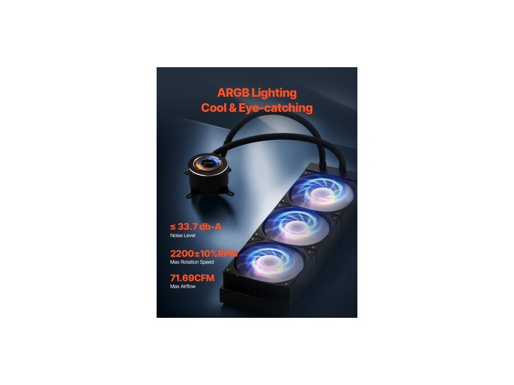 Kapalinový chladič CPU, vodní chladič CPU AIO - 3 x 120mm ventilátory PWN a čerpadlo, přizpůsobitelný černý kapalinový chladič pro PC s 2,1" LCD displejem a ARGB podsvícením, pro Intel 115X/1366/2011/1700/1200, AMD AM4/AM5