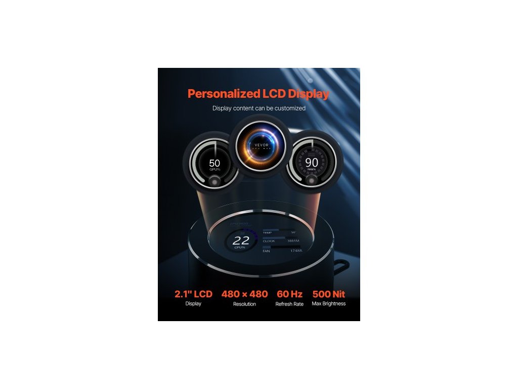 Kapalinový chladič CPU , vodní chladič CPU AIO - 3 x 120mm ventilátory PWN, čerpadlo a 2,1" LCD displej, max. 2200PRM, černý ventilátor CPU, kompatibilní s Intel 115X/1366/2011/1700/1200, AMD AM4/AM5