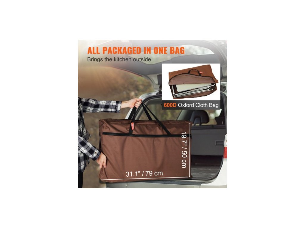 Rozměry po otevření: 68,5x18,1x69,3 palce/174x176x46 cm,Přenosná taška: 31,1x5,7x19,7 palce/79x14,5x50 cm,Hmotnost výrobku: 29 lbs/12,8 kg,Rozměry odkládacího stolku: 23,62x15,75 palce/60x40 cm,Rozměry po složení: 31,1x5,7x19,7 palce/79x14,5x50 cm, Materiál: hliník + železo + MDF, Rozměry čelního skla: 49,8x11,8 palce/126,5x30 cm, Nastavitelná výška sloupu lampy: 26-47,6 palce/66-121 cm