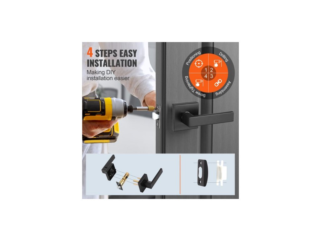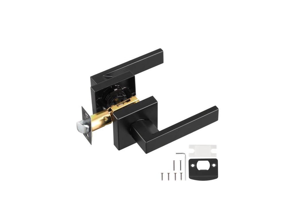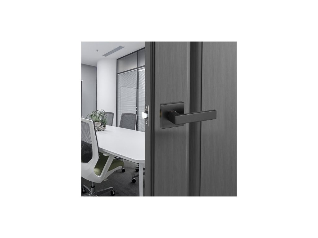 klika na průchozí dveře, 1 balení matně černé kliky, levá nebo pravá otočná páka, bez aretace, otočení o 45° pro otevření, univerzální čtvercový interiér pro chodby, šatny, zasedací prostory