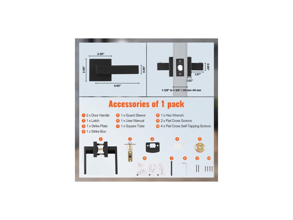 Nastavení zadní desky západky: 2-3/8" až 2-3/4" (přepínatelné 60 mm/70 mm),Rozměry kliky: 4,65" x 0,91" x 2,16" / 118 x 23 x 55 mm,Vhodná tloušťka dveří: 1-3/8" až 1-3/4" / 35 mm-45 mm,Barva: Černá,Číslo modelu položky: KJ2118-PS-BLK,Otevírání dveří: Otočení 45° pro otevření,Množství: 1 ks,Materiál západky: Železo,Čistá hmotnost: 0,96 kg,Materiál rukojeti: Slitina zinku,Rozměry západky 57 x 26 mm:Rozměry výrobku: 160 x 140 x 65 mm
