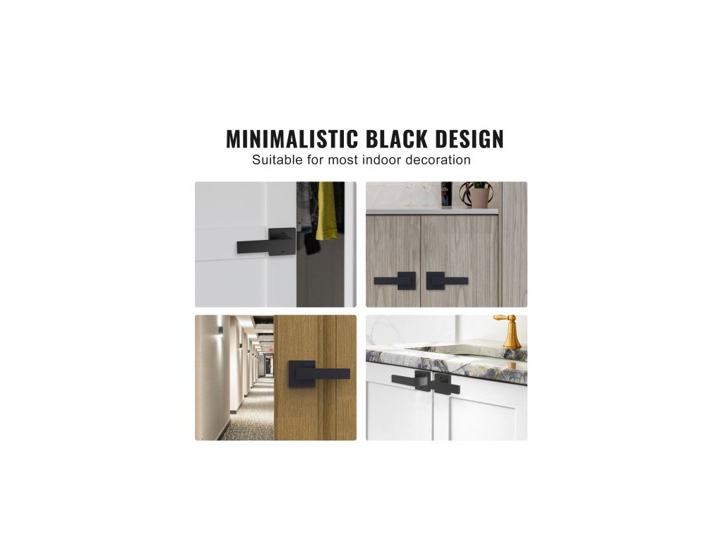 Klika na slepé dveře, 2dílná neotáčivá jednostranná klika, moderní sada čtvercových klik, oboustranná pro pravé a levé dveře, pro spíž, šatnu a francouzské dveře, matná černá