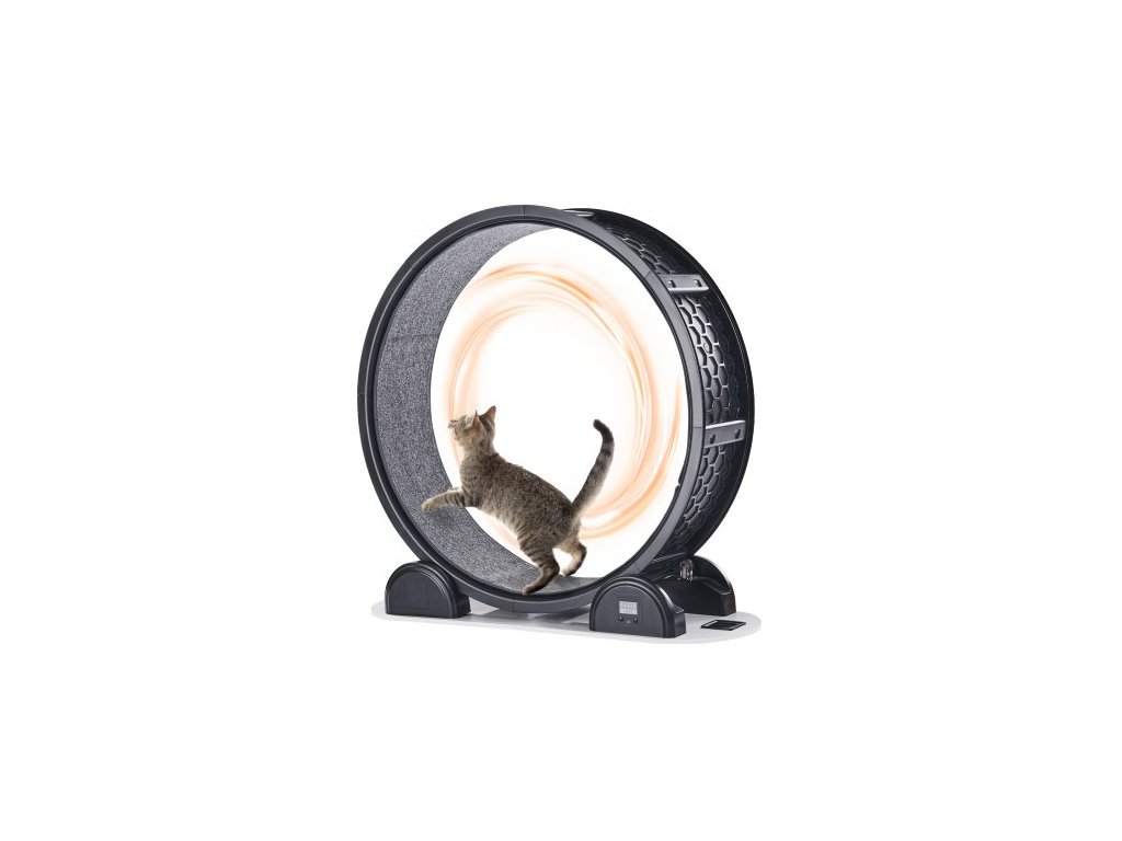 Kolečko pro cvičení koček s krokoměrem, 40,8 palce, Běžecké kolečko pro kočky s brzdou a kobercovou dráhou, Tichý běžecký pás pro kočky v interiéru do 30 liber, Kočičí cvičební pás pro domácí mazlíčky, Zdraví a fitness, Černá