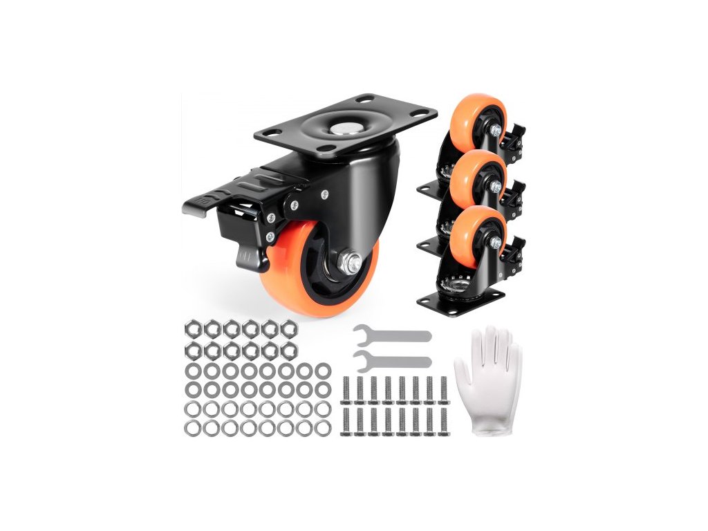 Kolečka , otočná kolečka o průměru 7,6 cm, sada 4 kusů, s bezpečnostním zámkem A/B, nehlučná PVC kolečka, vysoká nosnost 113,4 kg na kolečko, kolečka nezanechávají šmouhy pro pracovní stůl s vozíkem