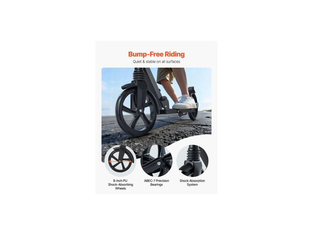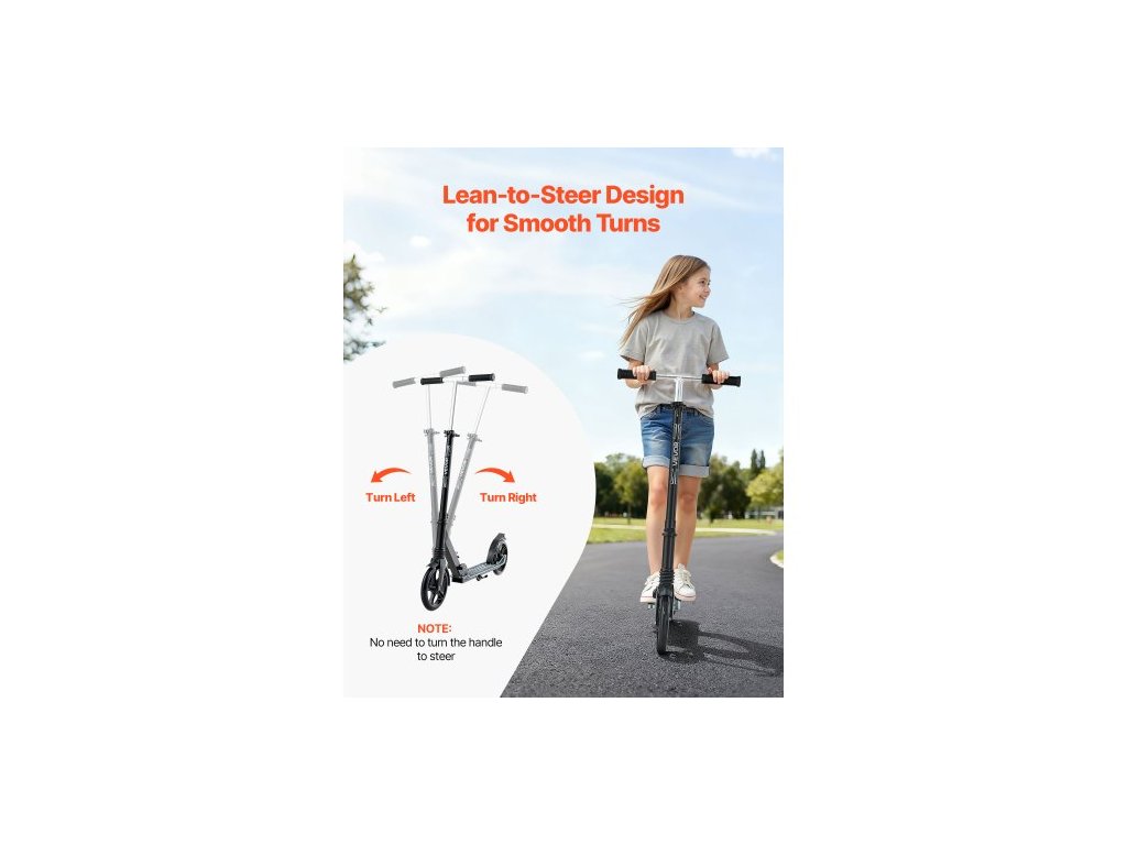 Koloběžka pro děti od 8 let, teenagery a dospělé, dvoukolová dětská koloběžka s nastavitelnou výškou řídítek, široká protiskluzová deska, skládací lehký rám pro chlapce a dívky do 99,8 kg, černá
