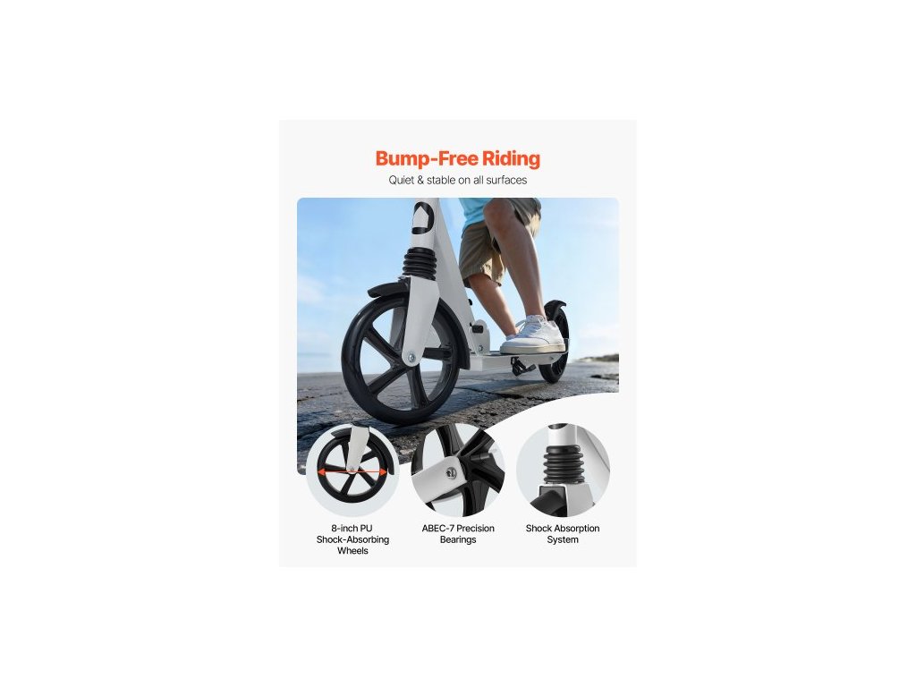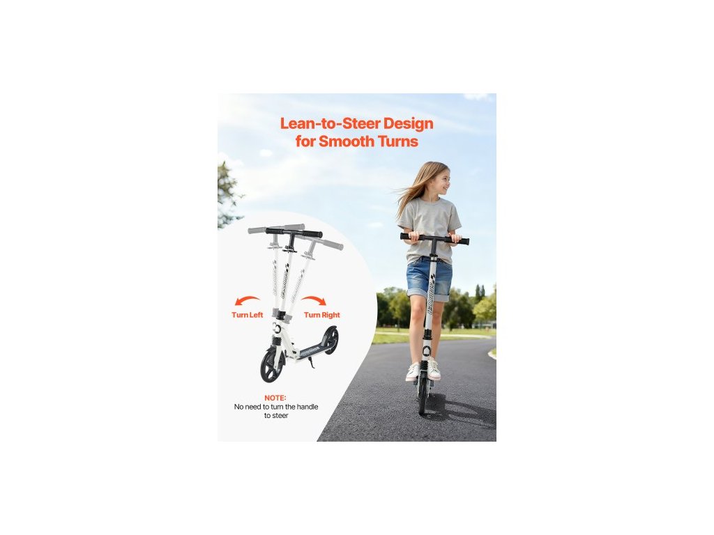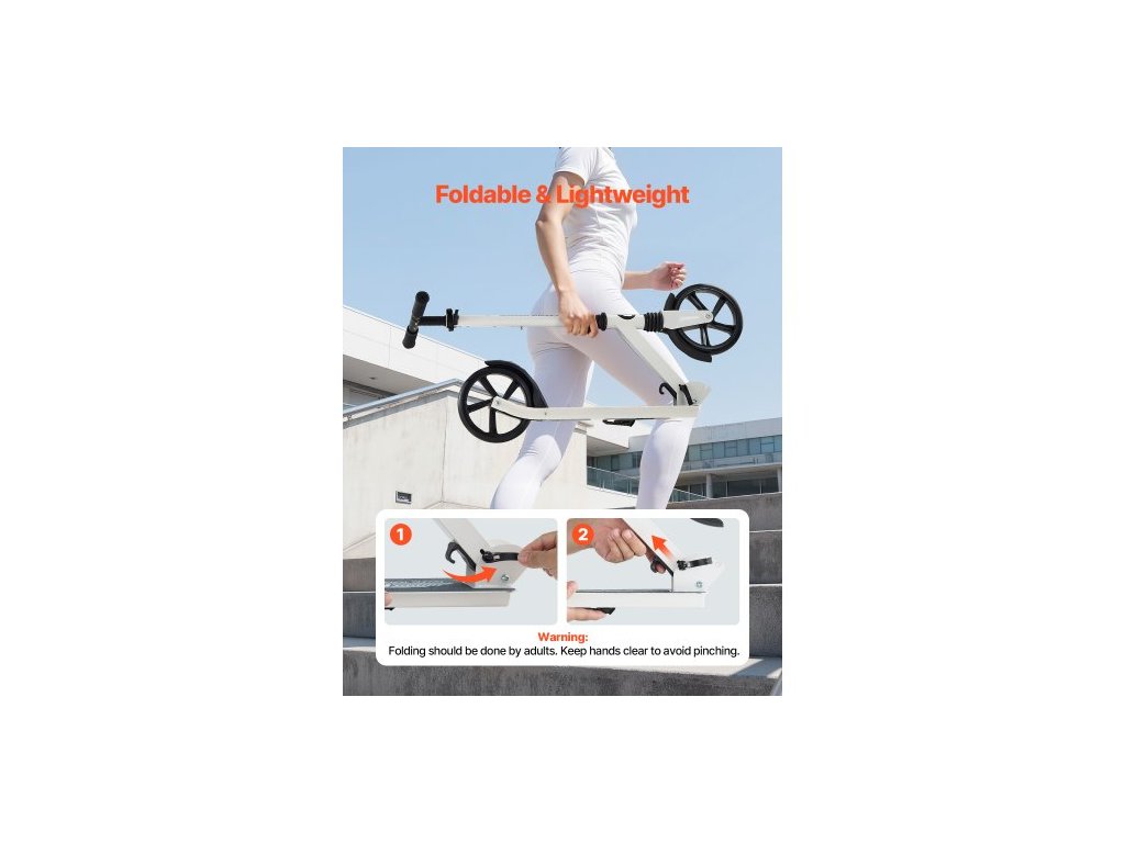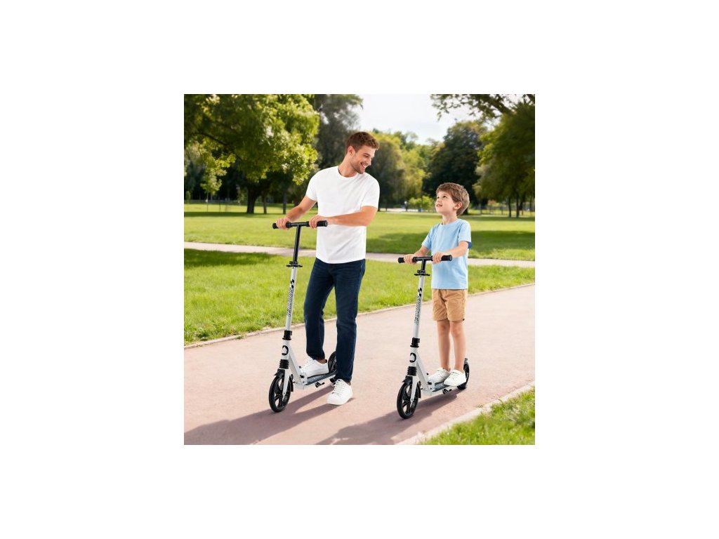 Koloběžka pro děti od 8 let, teenagery a dospělé, dvoukolová dětská koloběžka s nastavitelnou výškou řídítek, široká protiskluzová deska, skládací, lehká pro chlapce a dívky do 99,8 kg, bílá + černá