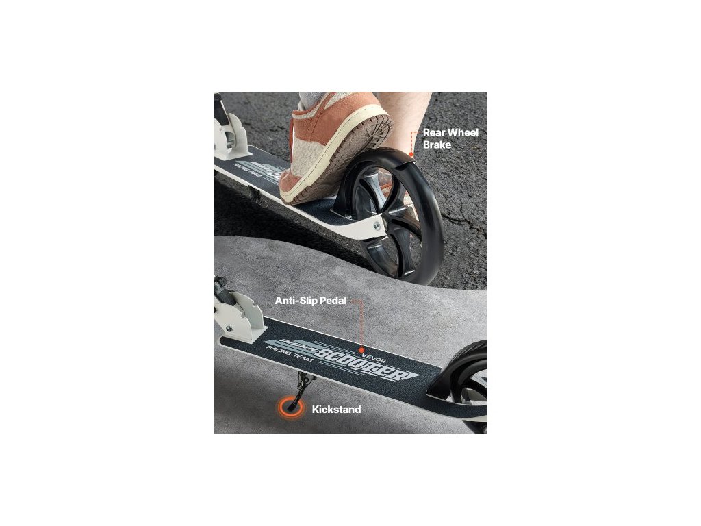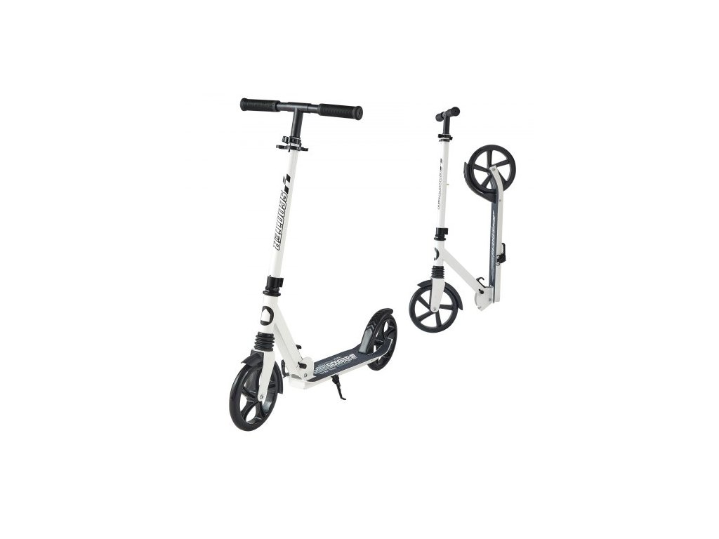 Koloběžka pro děti od 8 let, teenagery a dospělé, dvoukolová dětská koloběžka s nastavitelnou výškou řídítek, široká protiskluzová deska, skládací a lehká pro chlapce a dívky do 99,8 kg, bílá + černá