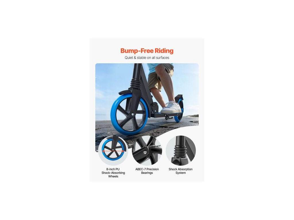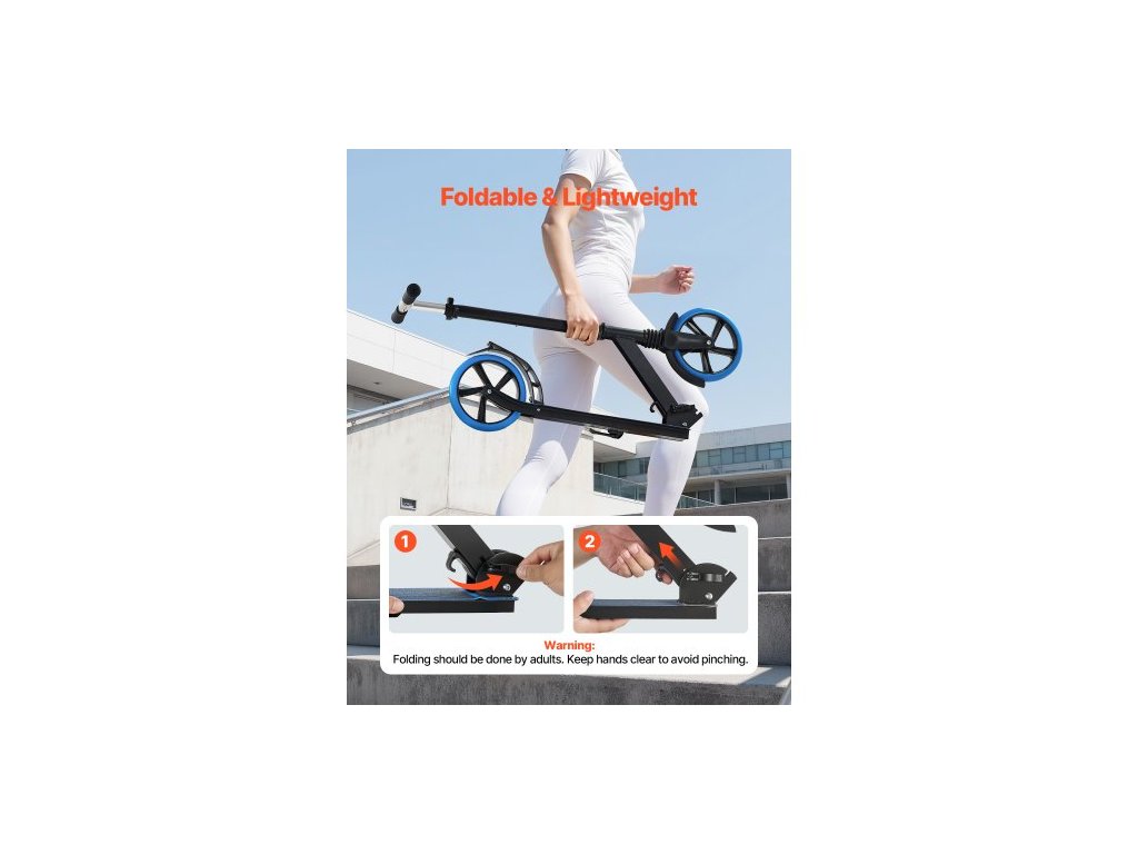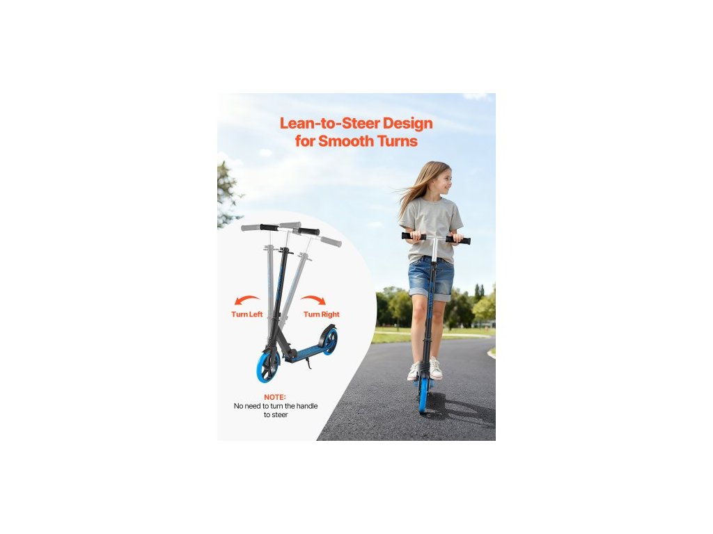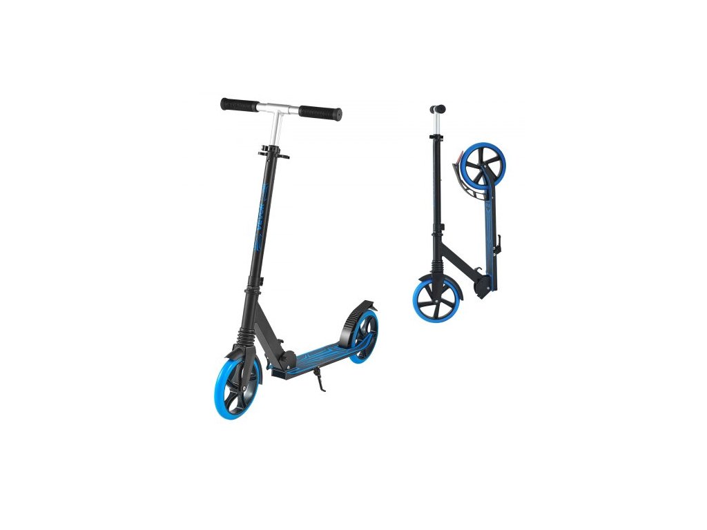 Koloběžka pro děti od 8 let, teenagery a dospělé, dvoukolová dětská koloběžka s nastavitelnou výškou řídítek, široká protiskluzová deska, skládací lehký rám pro chlapce a dívky do 99,8 kg, modrý