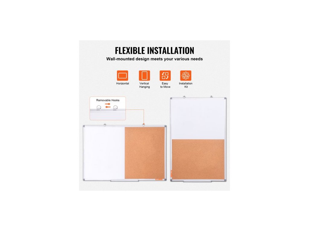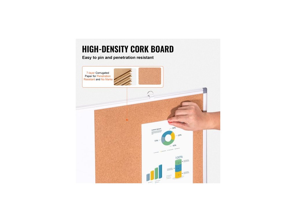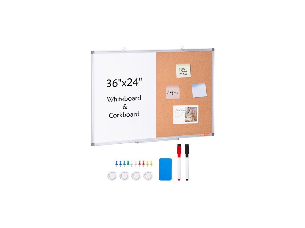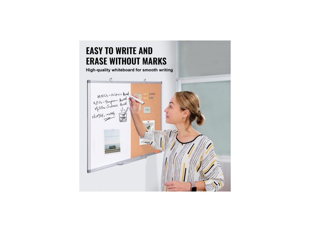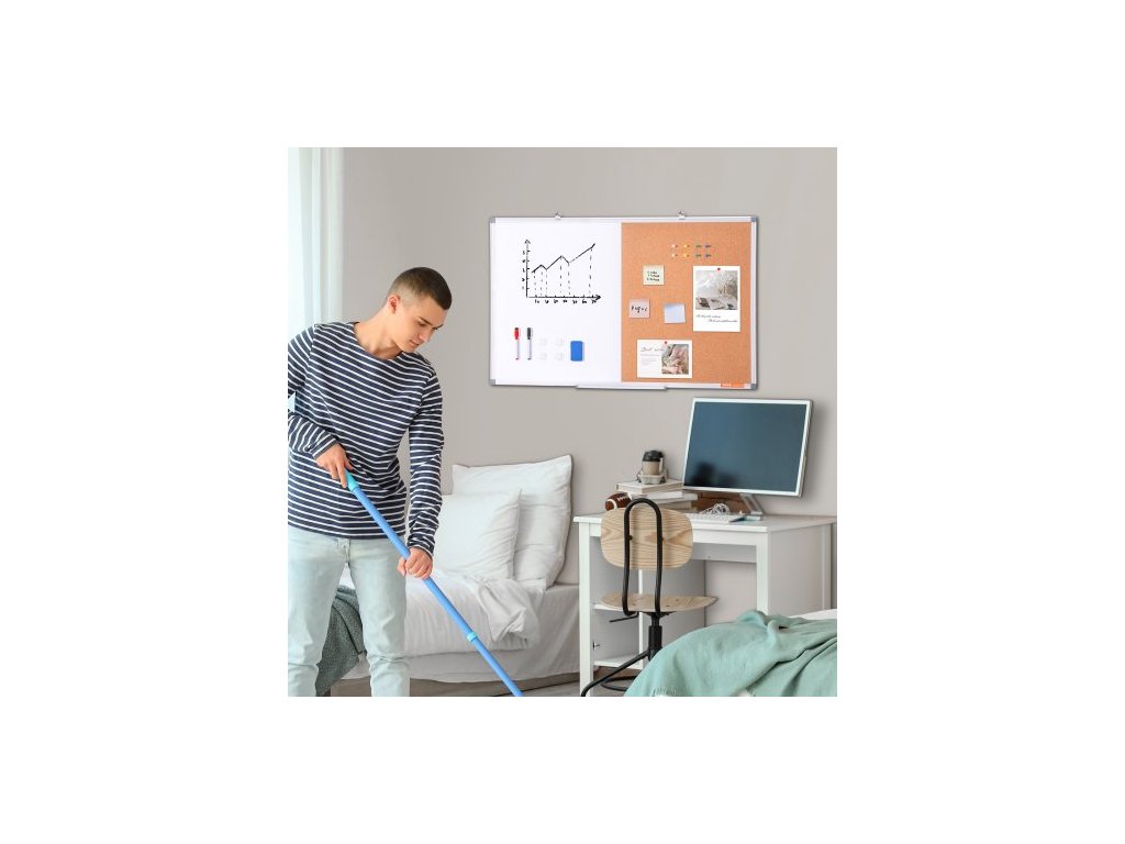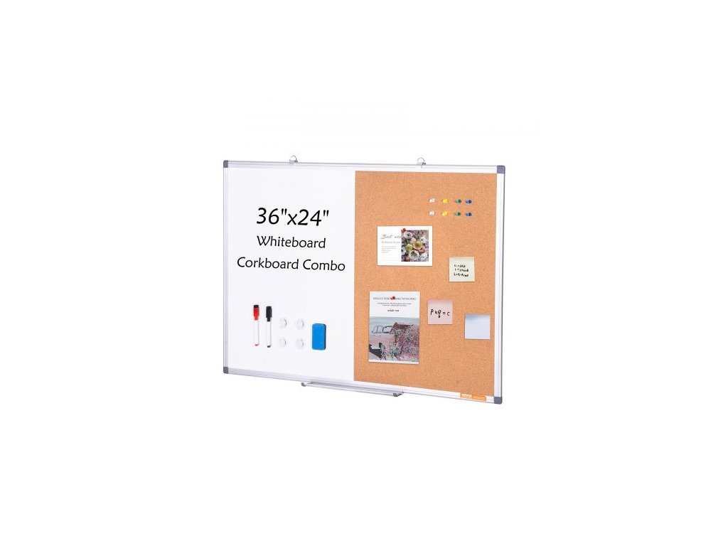 Kombinace bílé a korkové tabule 36"x 24" s hliníkovým rámem – magnetická nástěnka 2 v 1 s možností suchého mazání k montáži na zeď – ideální do školy, domů i kanceláře