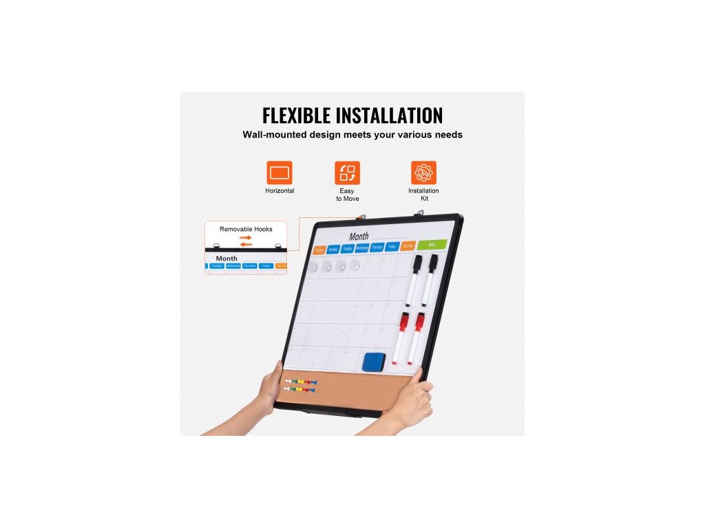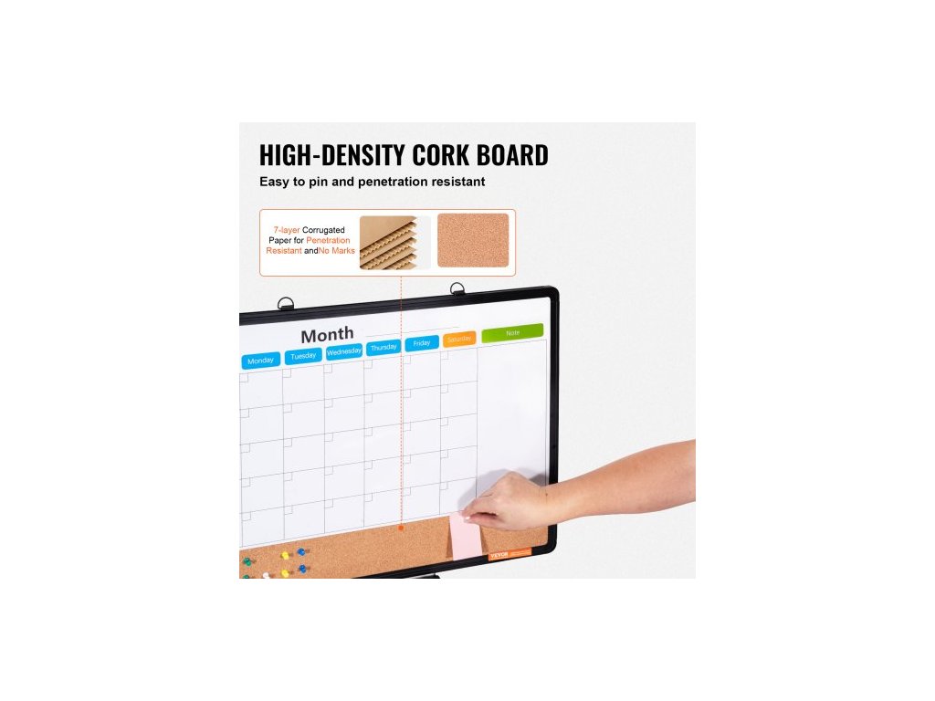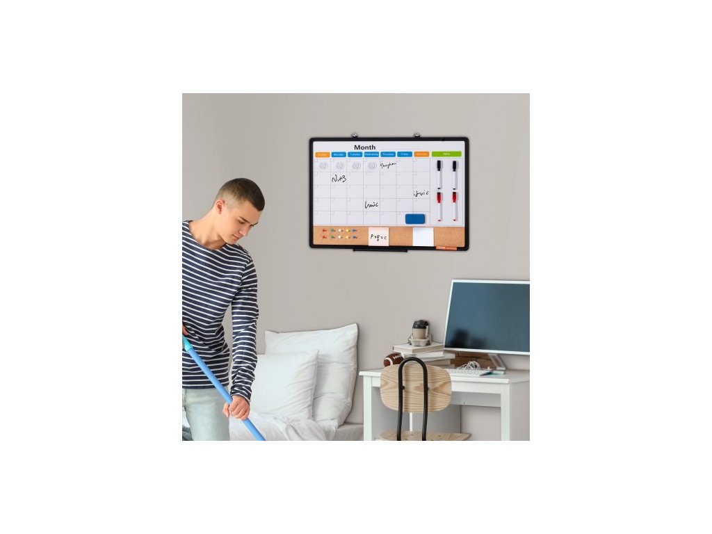 Kombinace bílé tabule s měsíčním kalendářem a korkové tabule 24"x 18" s hliníkovým rámem – Magnetická nástěnka 2 v 1 s možností suchého mazání k montáži na zeď – Ideální do školy, domácnosti, kanceláře