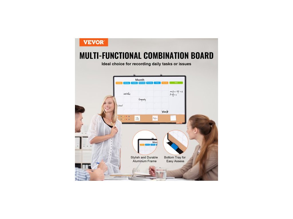 Kombinace bílé tabule s měsíčním kalendářem a korkové tabule 36"x 24" s hliníkovým rámem – Magnetická nástěnka 2 v 1 s možností suchého mazání k montáži na zeď – Ideální do školy, domácnosti, kanceláře