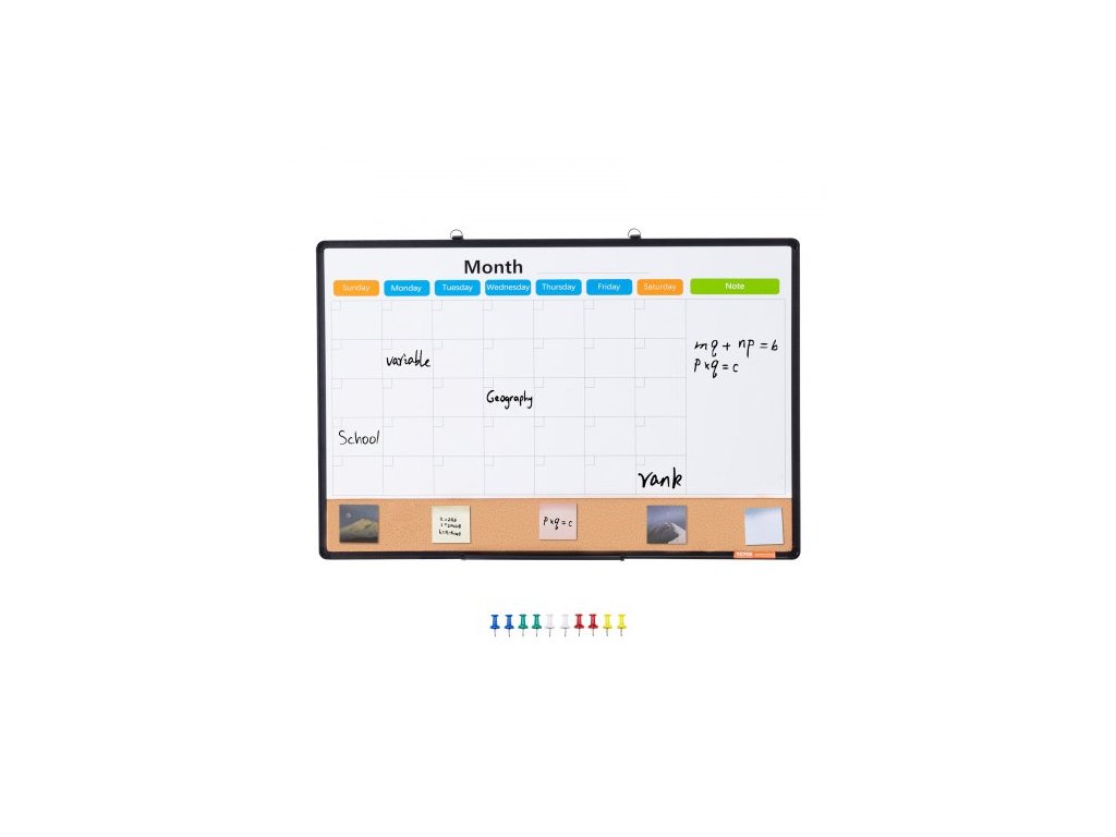 Kombinace bílé a korkové tabule s měsíčním kalendářem 36"x 24" s hliníkovým rámem – magnetická nástěnka 2 v 1 s možností suchého mazání k upevnění na zeď – ideální do školy, domů i kanceláře