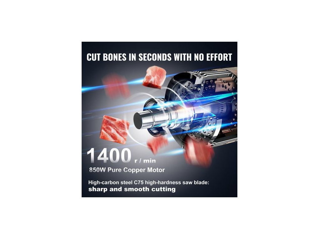 Komerční elektrická pásová pila na maso, vertikální pila na kosti z nerezové oceli 850 W, pracovní stůl 19,1"x15", tloušťka řezu 7,09 palce, řezačka mraženého masa s čepelí na vepřová a hovězí žebra