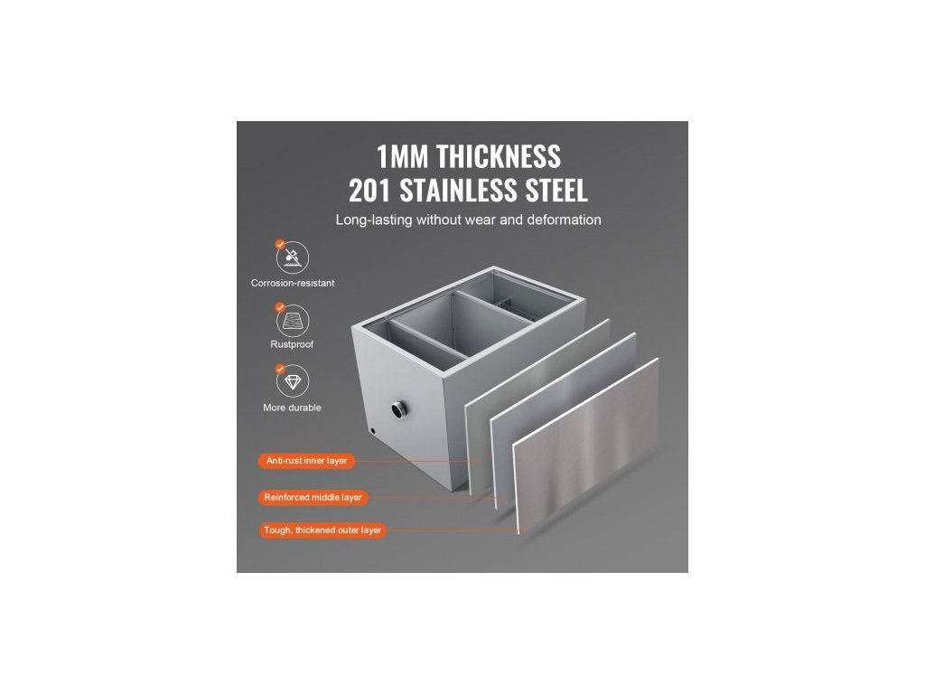 Primární materiál: nerezová ocel 201, průtok: 9,96 galonů za minutu/min, velikost vstupu: φ1,65 palce / 42 mm, velikost výstupu: φ1,89 palce / 48 mm, číslo modelu položky: YSFLQ60*40*39, hmotnost výrobku: 25,02 liber/11,35 kg, počet otvorů: 3, rozměry výrobku: 23,62 x 15,75 x 15,4 palce/ 600x400x390 mm