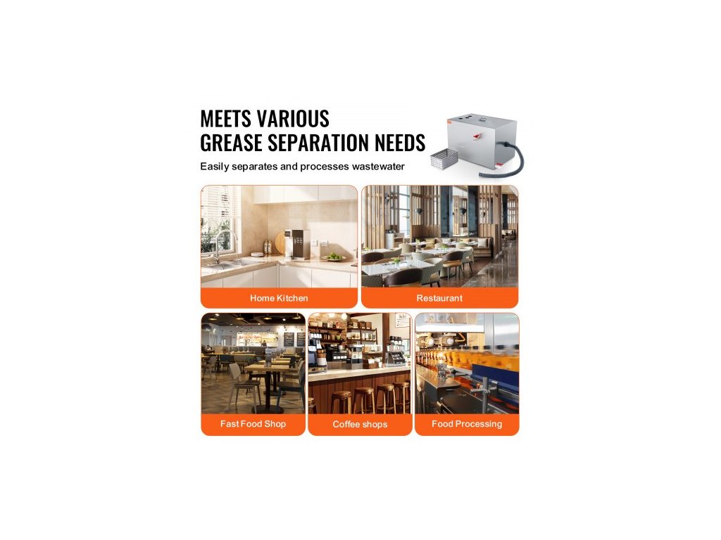 Komerční lapač tuků , lapač tuků 40 liber, horní vstupní lapač, lapač tuků z nerezové oceli pod dřez, odlučovač odpadní vody 10 galonů za minutu, pro restauraci, jídelnu, domácí kuchyň