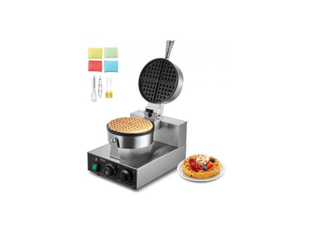 Komerční výrobník vaflí, kulatý stroj na vafle 1230 W, belgický vaflovač z nerezové oceli s nepřilnavým povrchem a regulací teploty a času, rukojeť, pro restaurace, pekárny, bary a rodinné domy