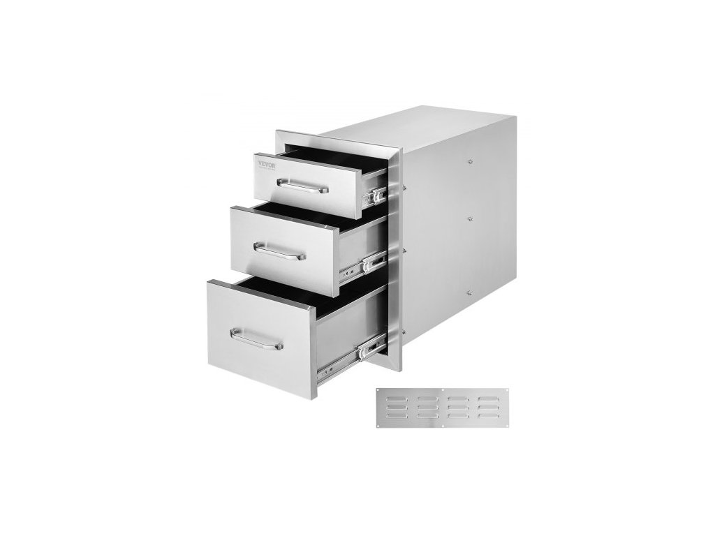 Komoda z nerezové oceli se 3 zásuvkami a úchytkou, úložná skříňka na gril 35*58 cm