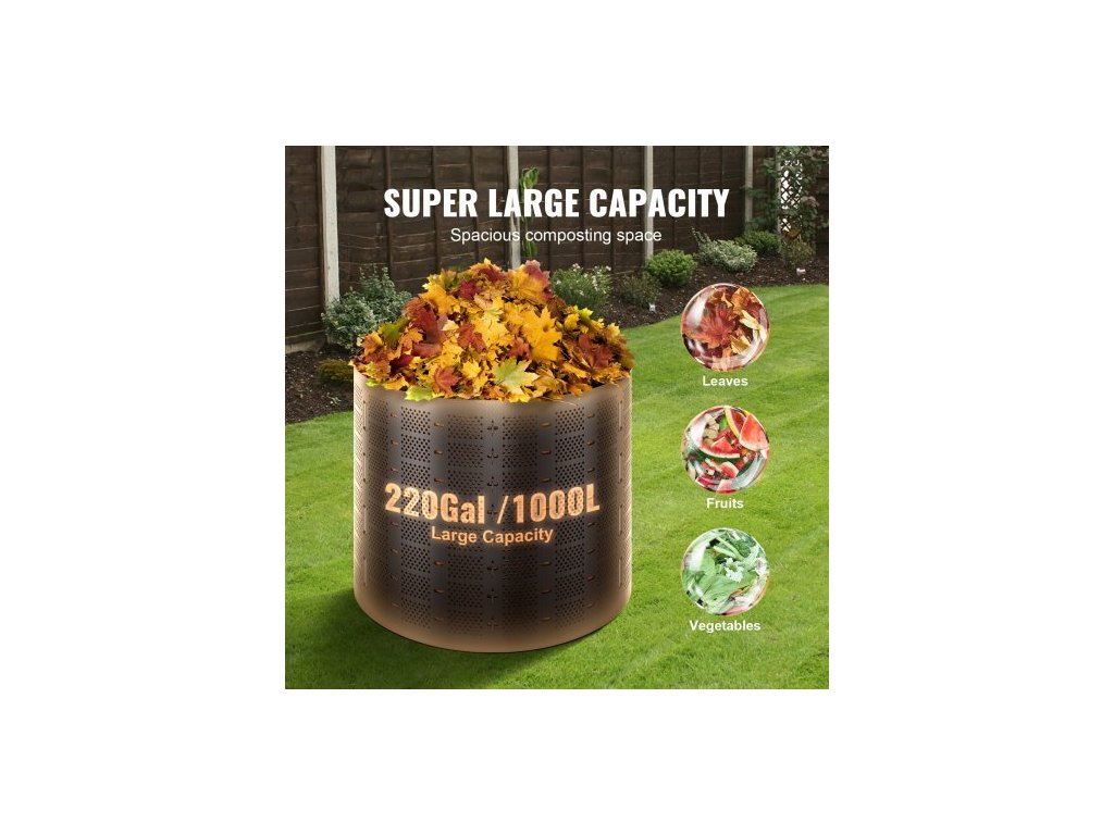 Kompostér 832,8 l, venkovní rozšiřitelný kompostér, snadné nastavení a velkokapacitní kompostér, rychlé vytvoření úrodné půdy