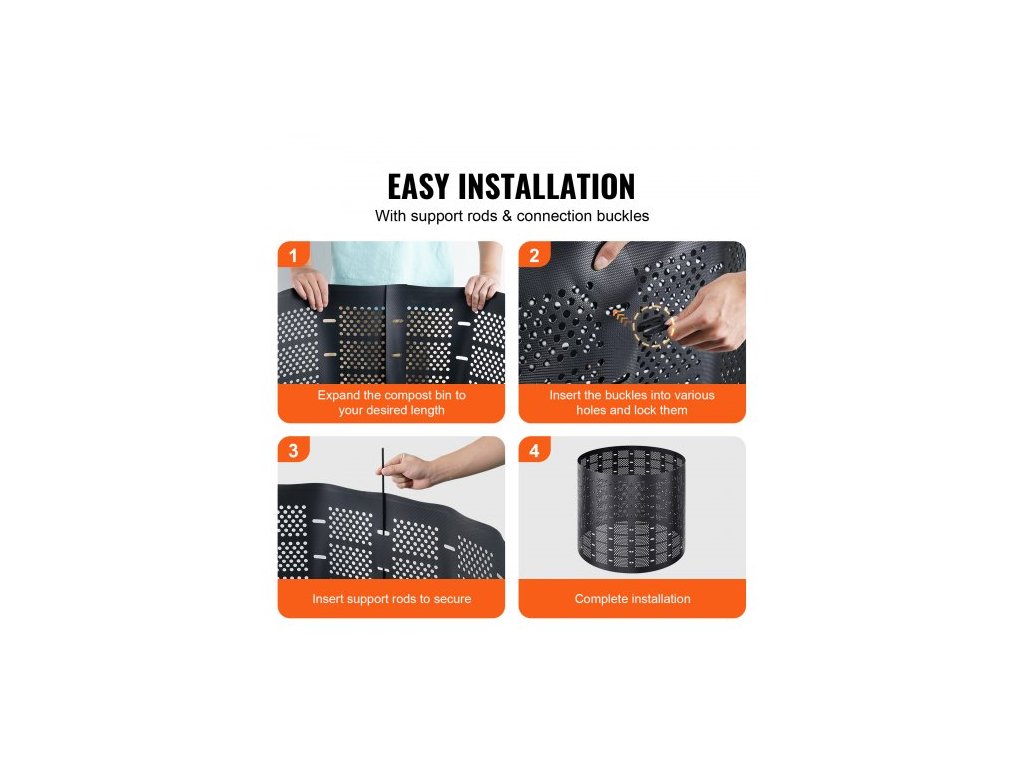 Hlavní materiál: HDPE,Rozměry po rozložení (DxV): 131 x 35 palců/335 x 90 cm,Objem: 220 galonů/1000 l,Rozměry po složení: Výška: 35 palců/90 cm,Průměr: 3,97 palců/10 cm,Barva: Černá,Číslo modelu: 335*90 cm,Hmotnost výrobku: 3,26 kg±3 %/7,18 lbs±3 %,Maximální průměr: 42 palců,Hlavní funkce: List Sběr, kompostování