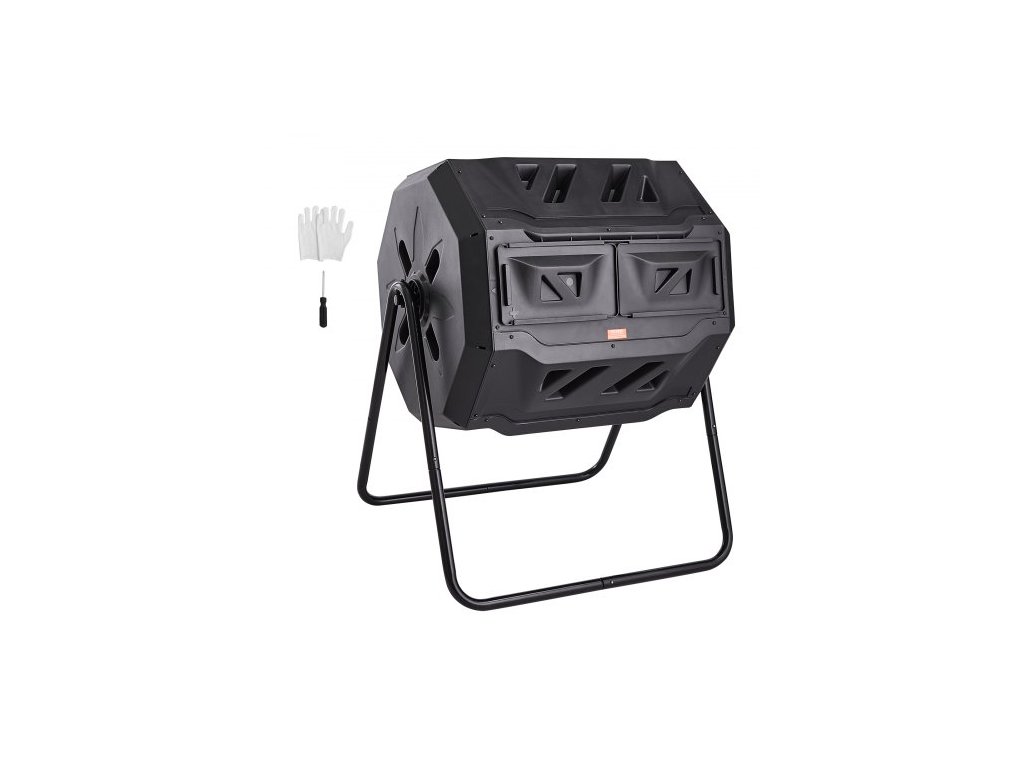 Kompostér , dvoukomorový kompostér o objemu 162,8 l, velký rotační kompostér s 2 posuvnými dvířky a ocelovým rámem, kompostér bez BPA pro zahradu, kuchyň, dvůr, venkovní použití