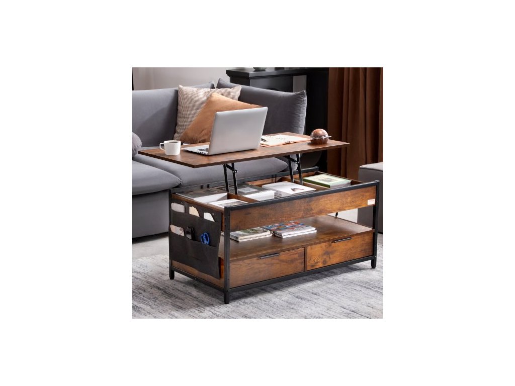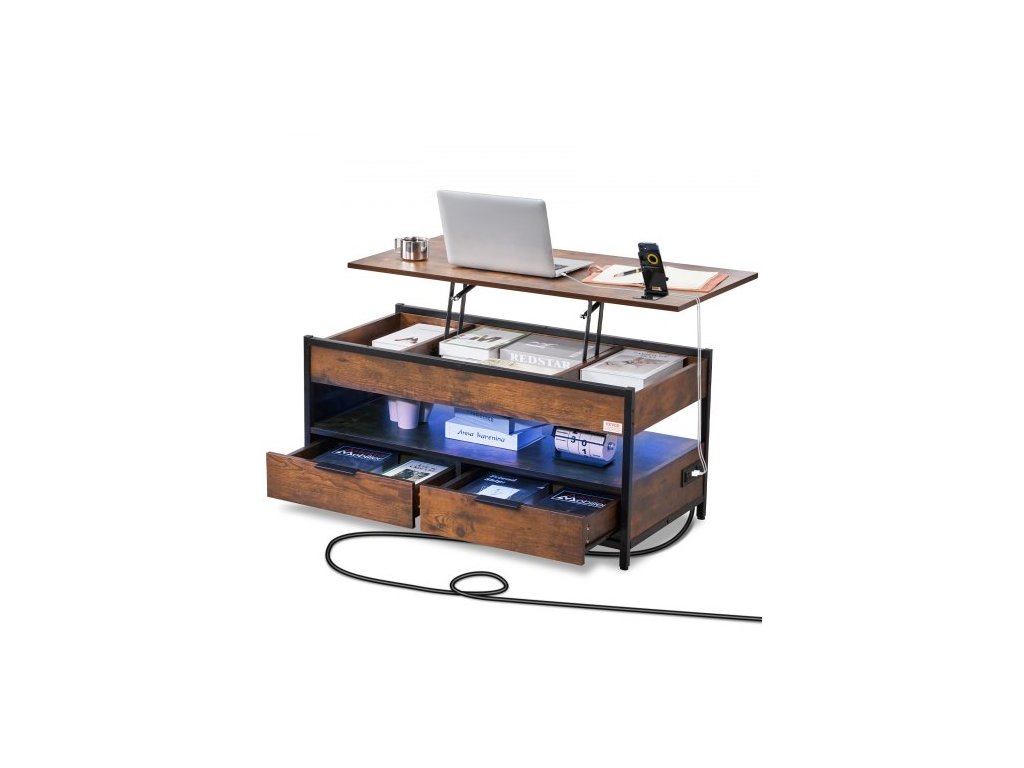Počet nastavitelných desek: 1,Otočná deska: Není otočná,Barva: Hnědá,Plynová pružina: Ano,Boční úložná taška: Ano,Materiál:Deska: Dřevotříska,Vestavěný prodlužovací kabel: 2 x 3zásuvkový + 2 x USB porty,Rozměry produktu: 1000 x 498 x 480 mm,Ambientní osvětlení: Ano - Měnící se barva,Počet úložných vrstev: 2,Nosnost: 50 kg, Číslo modelu položky: KLCT-03, Hmotnost výrobku: 29,85 kg, Délka stolu: 99,4 cm, Maximální výška nastavitelného stolu: 545 mm