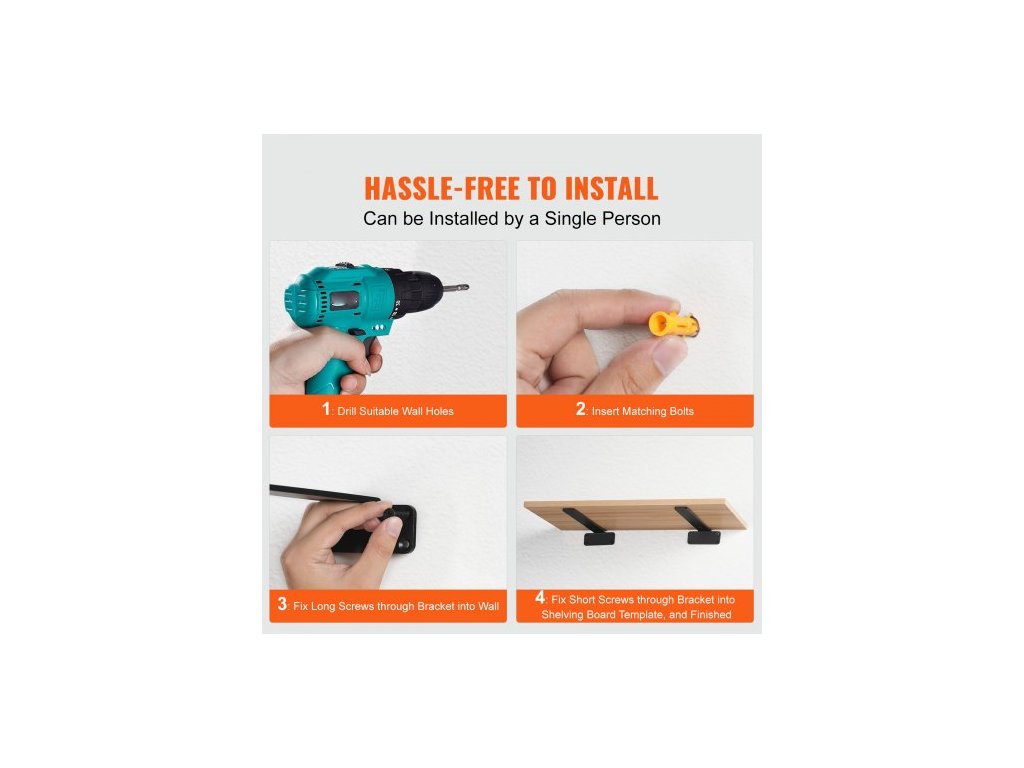 Konzola na police , 15 cm D x 10 cm Š x 4,3 cm V, 6 ks, Odolné plovoucí konzole na police, Konzoly pro police, Matně černá konzola na police ve tvaru L o tloušťce 5 mm, Ocelové konzole na police s nosností 74 kg