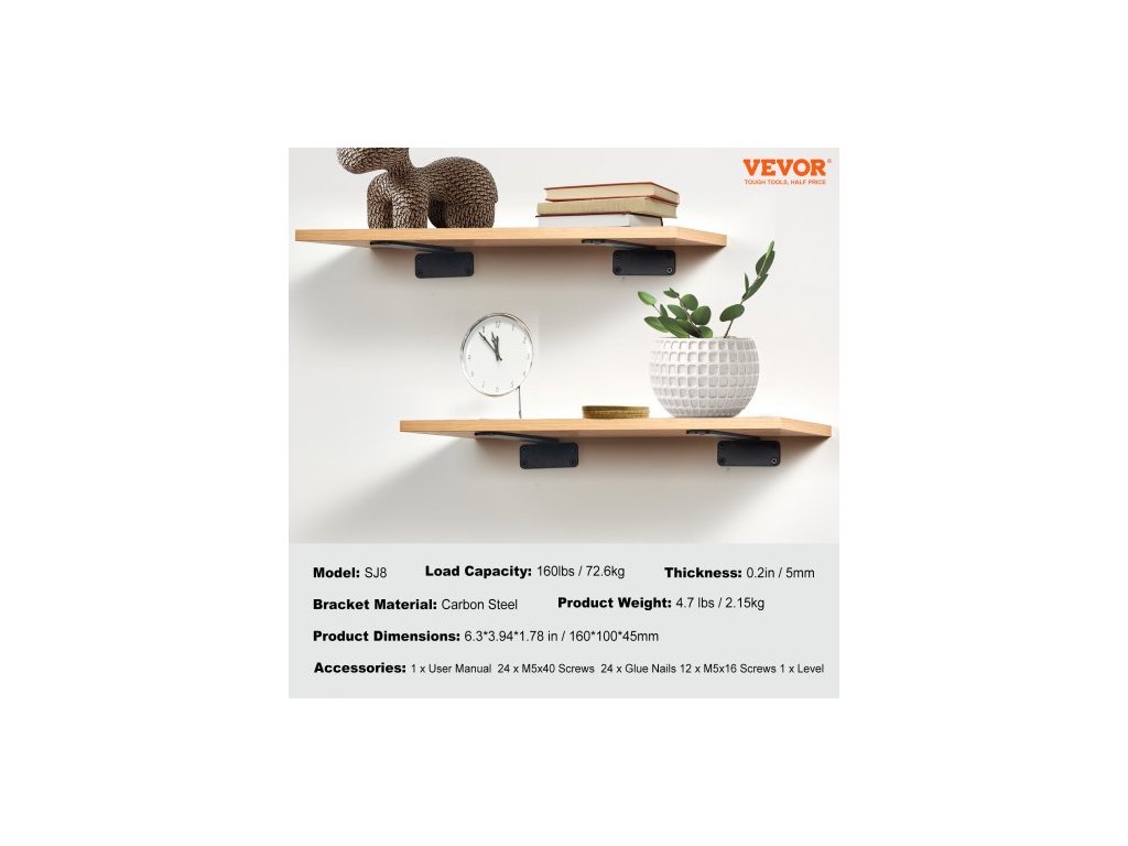 Tloušťka: 5 mm, Nosnost: 72,6 kg, Model: SJ8, Hmotnost výrobku: 2,15 kg, Rozměry výrobku: 160 x 100 x 45 mm, Materiál konzoly: Uhlíková ocel