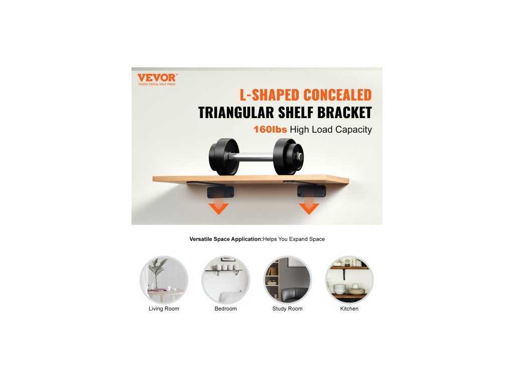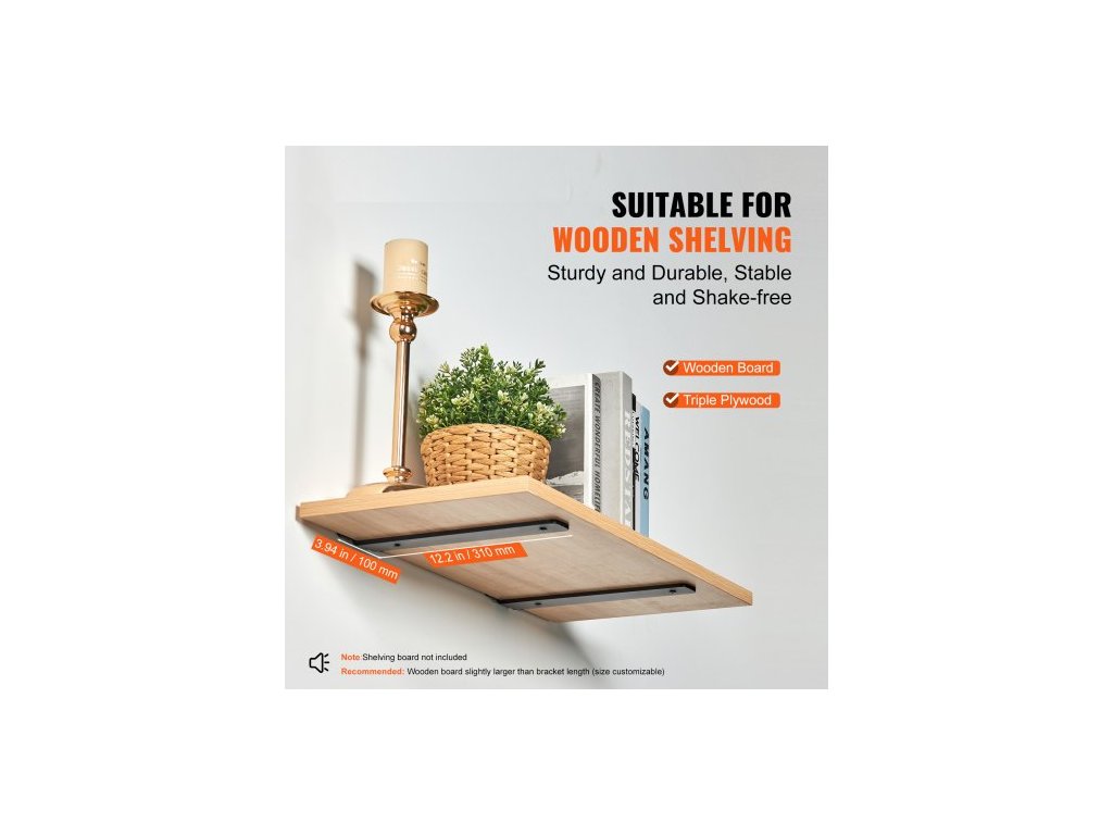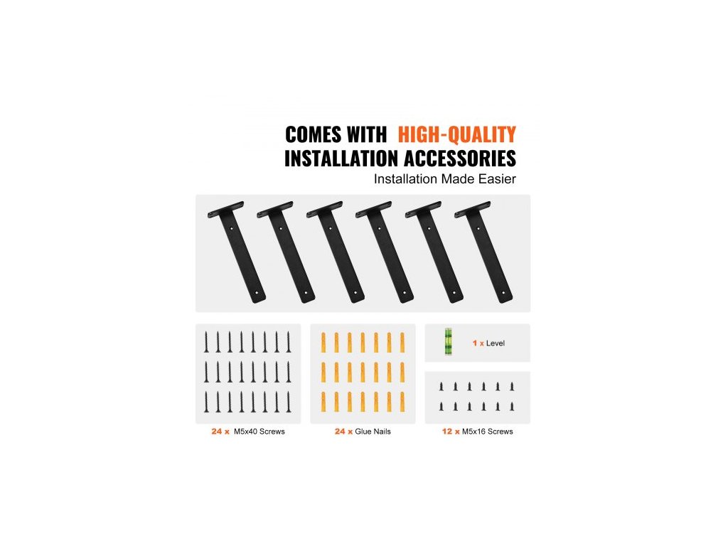 Konzola na police , 30,5 cm D x 10,5 cm Š x 4,3 cm V, 6 ks, Odolné plovoucí konzole na police, Konzoly pro police, Matně černá konzola na police ve tvaru L o tloušťce 5 mm, Ocelové konzole na police s nosností 74 kg