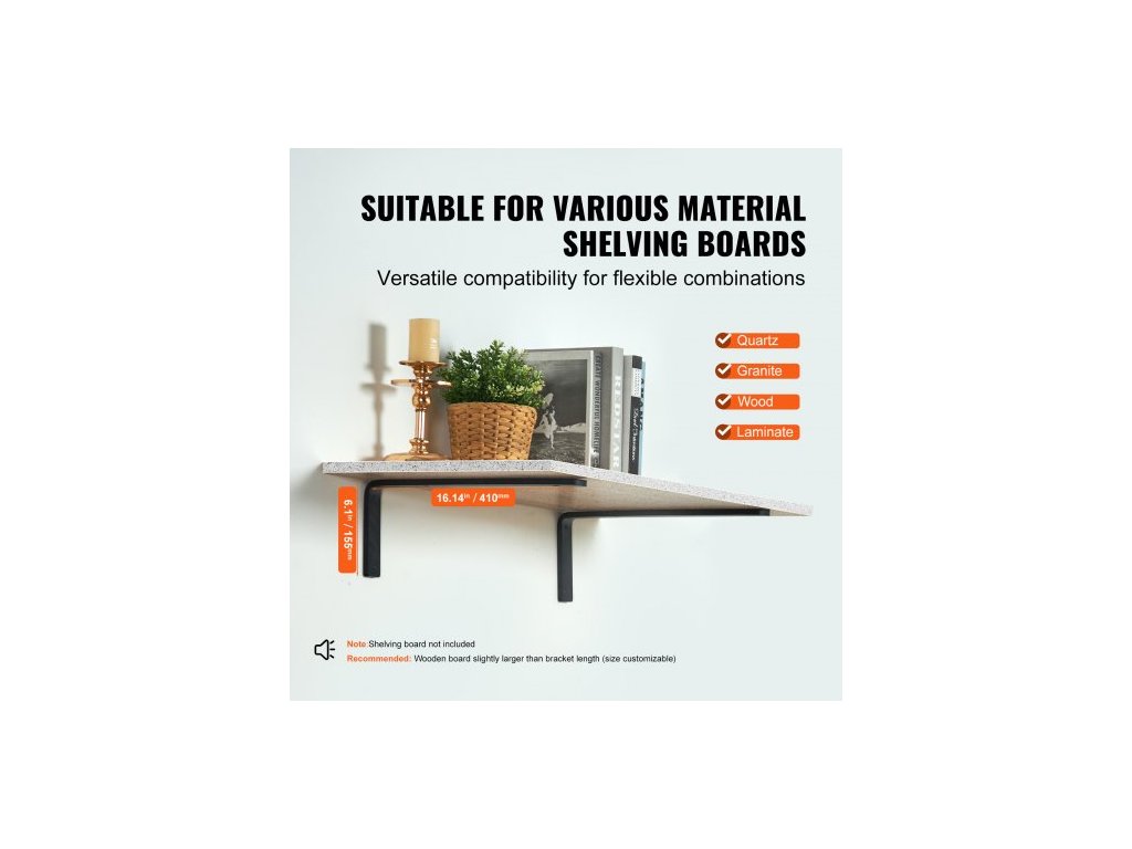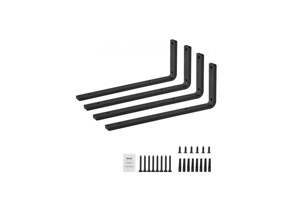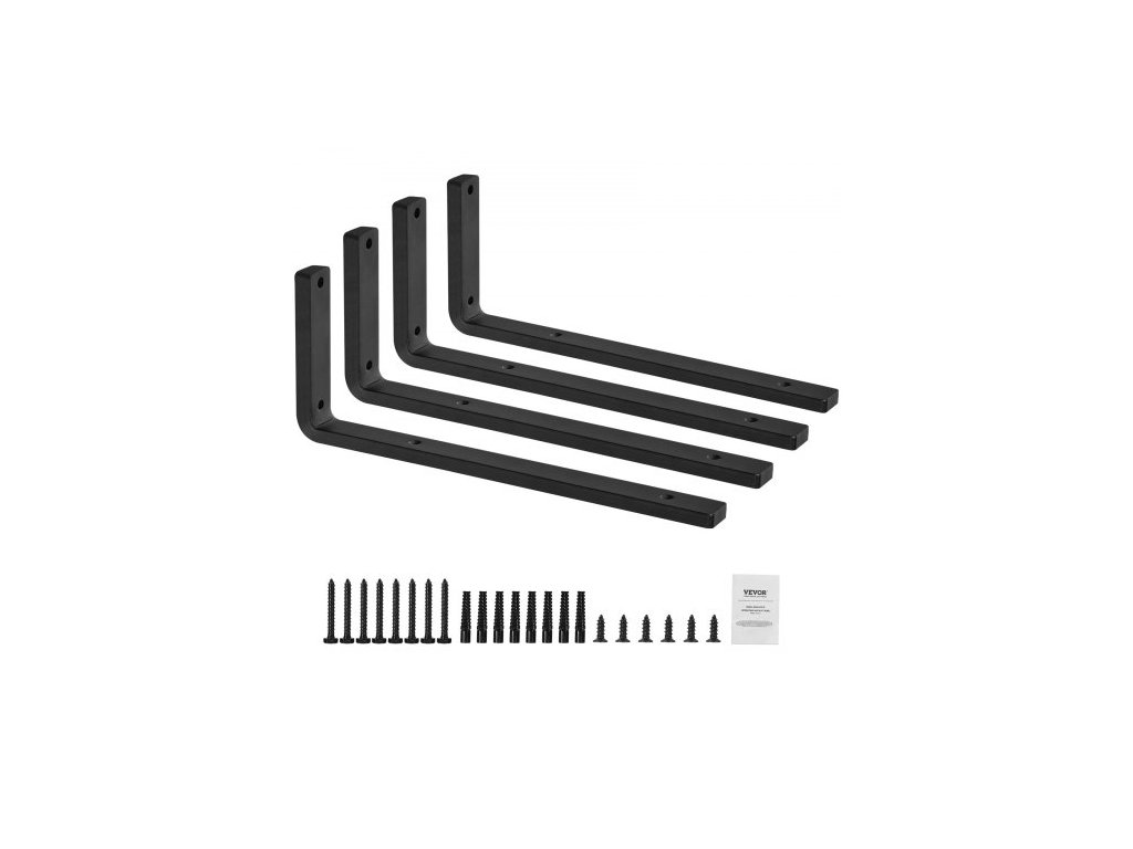 Konzola police , 16 x 6 palců, 4 ks, Vysoce odolné plovoucí konzole polic, Konzoly pro police, 10 mm silná matně černá konzola police ve tvaru L, Ocelové konzole polic s nosností 160 liber