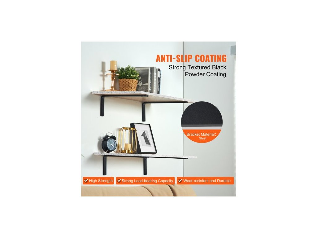 Konzola na police , 16 x 6 palců, 4 ks, Vysoce odolné plovoucí konzole na police, Konzoly pro police, 10 mm silná matně černá konzola na police ve tvaru L, Ocelové konzole na police s nosností 160 liber