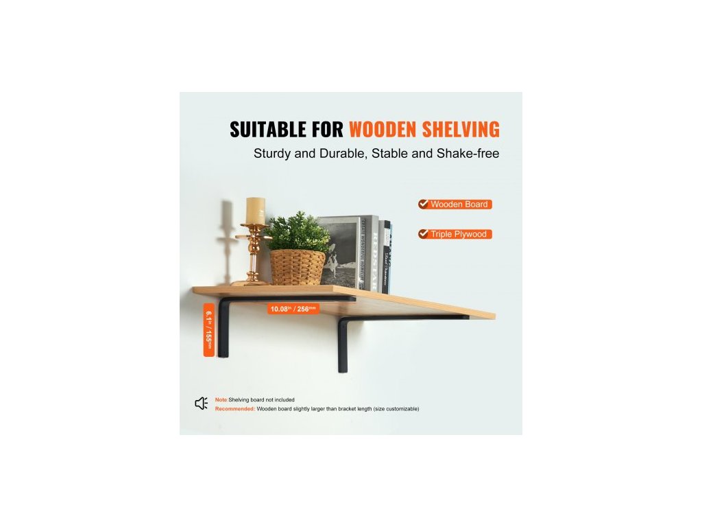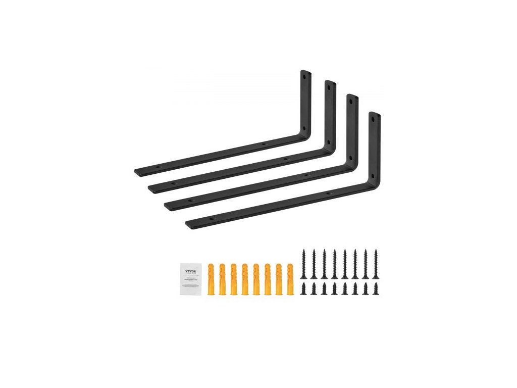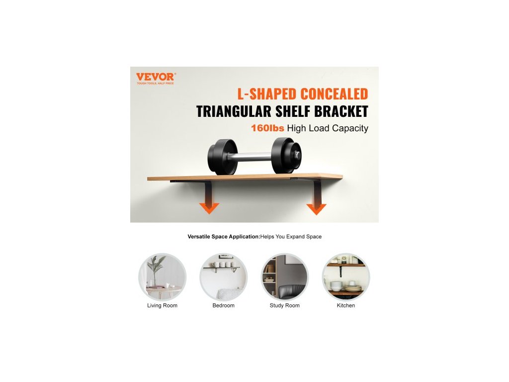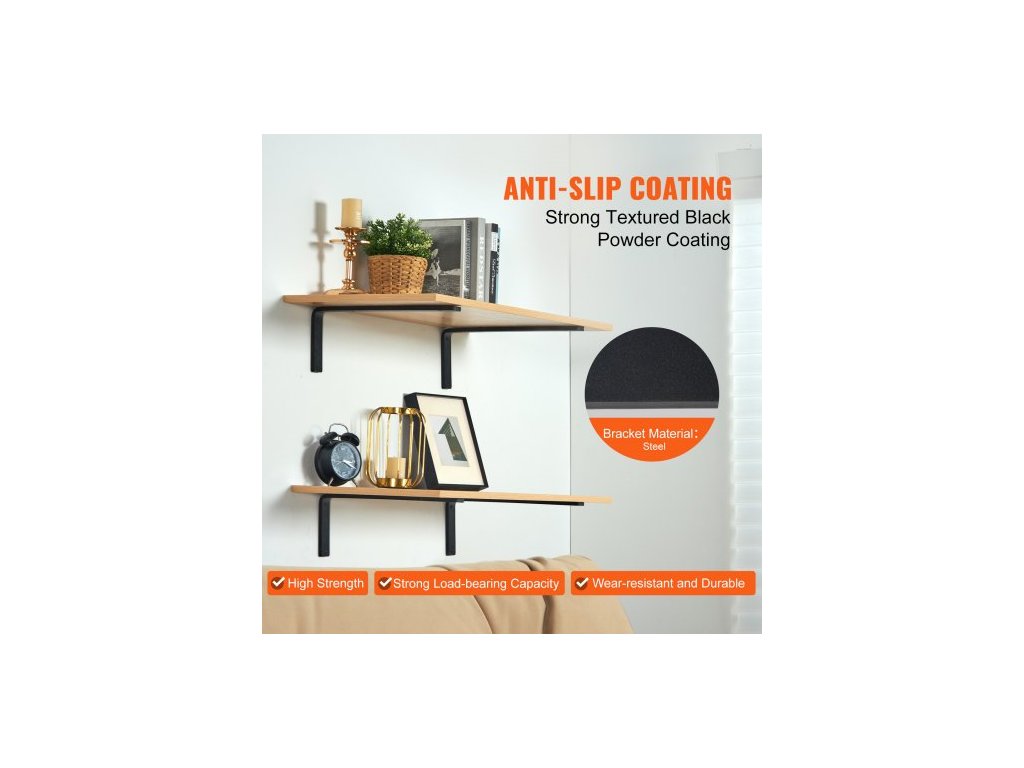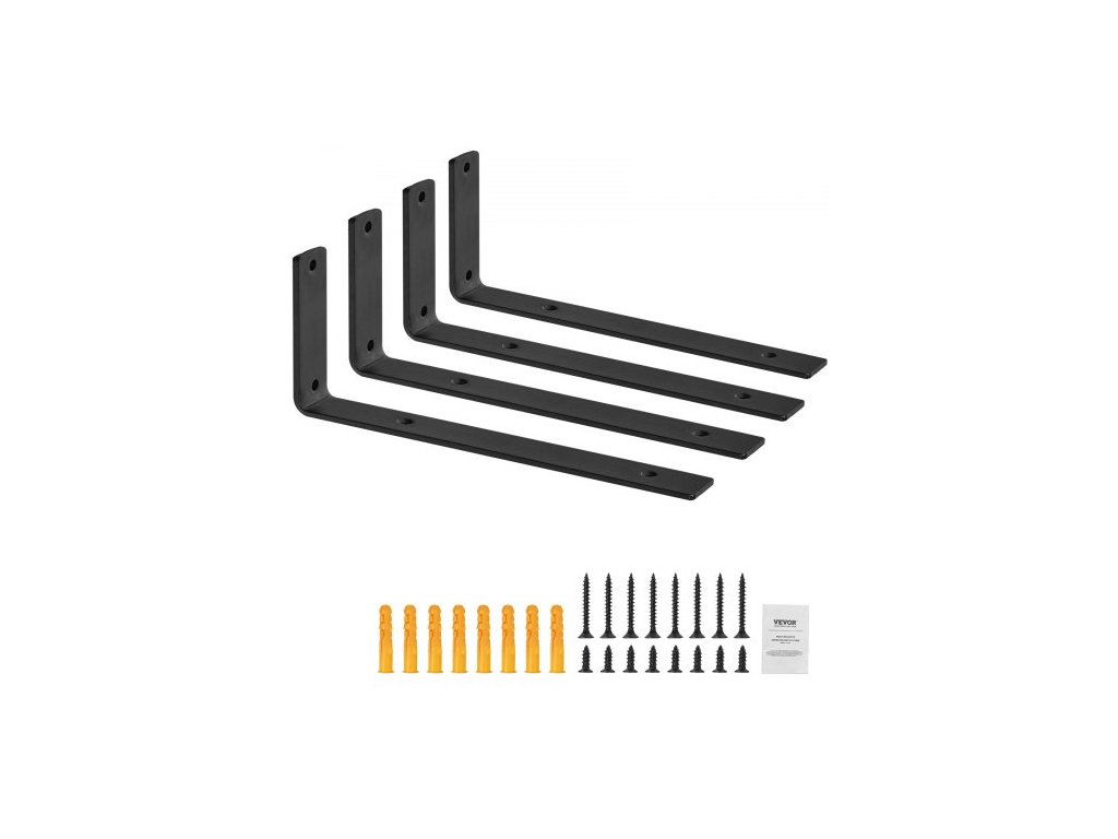 Konzola police , Vysoce odolné plovoucí konzole polic 10 x 6 palců, 4 ks konzol pro police, 5mm silná matně černá konzola police ve tvaru L, Ocelové konzole polic s nosností 160 liber
