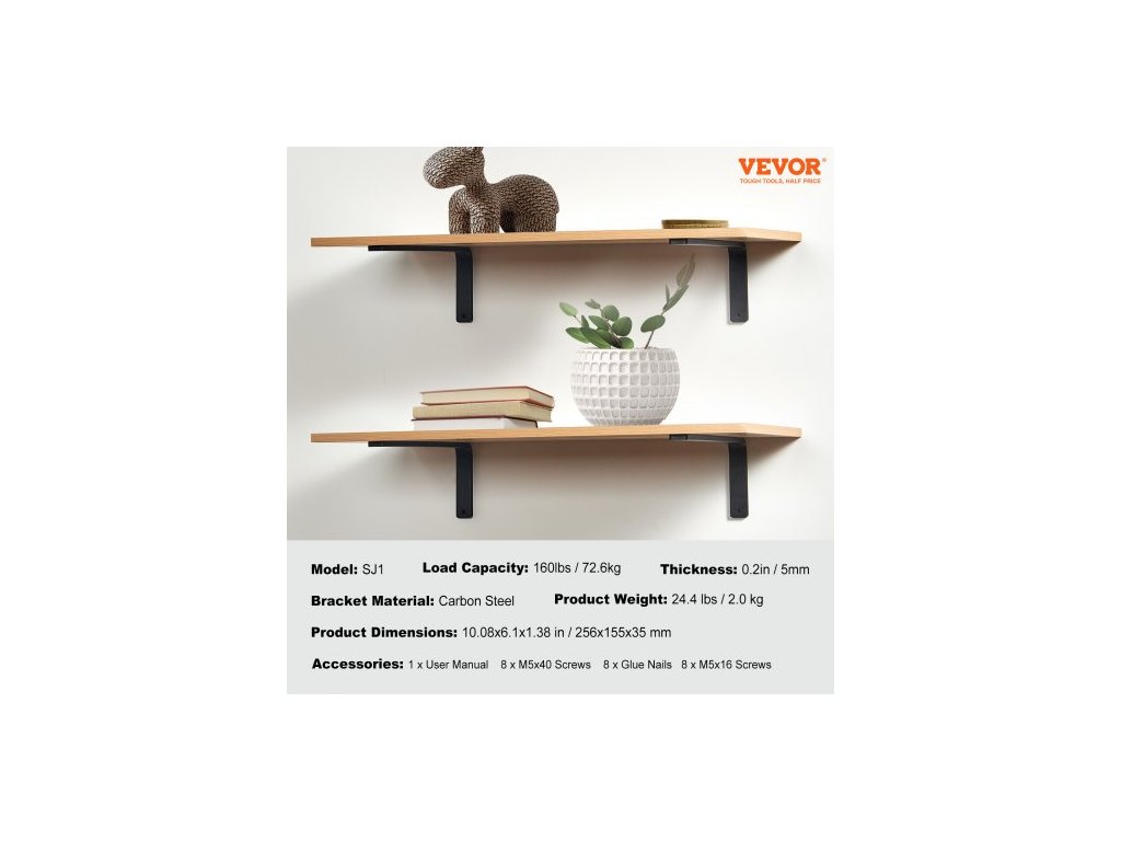 Tloušťka: 0,2 palce / 5 mm, Nosnost: 160 liber / 72,6 kg, Model: SJ1, Hmotnost výrobku: 24,4 liber / 2,0 kg, Rozměry výrobku: 10,08x6,1x1,38 palce / 256x155x35 mm, Materiál konzoly: Uhlíková ocel