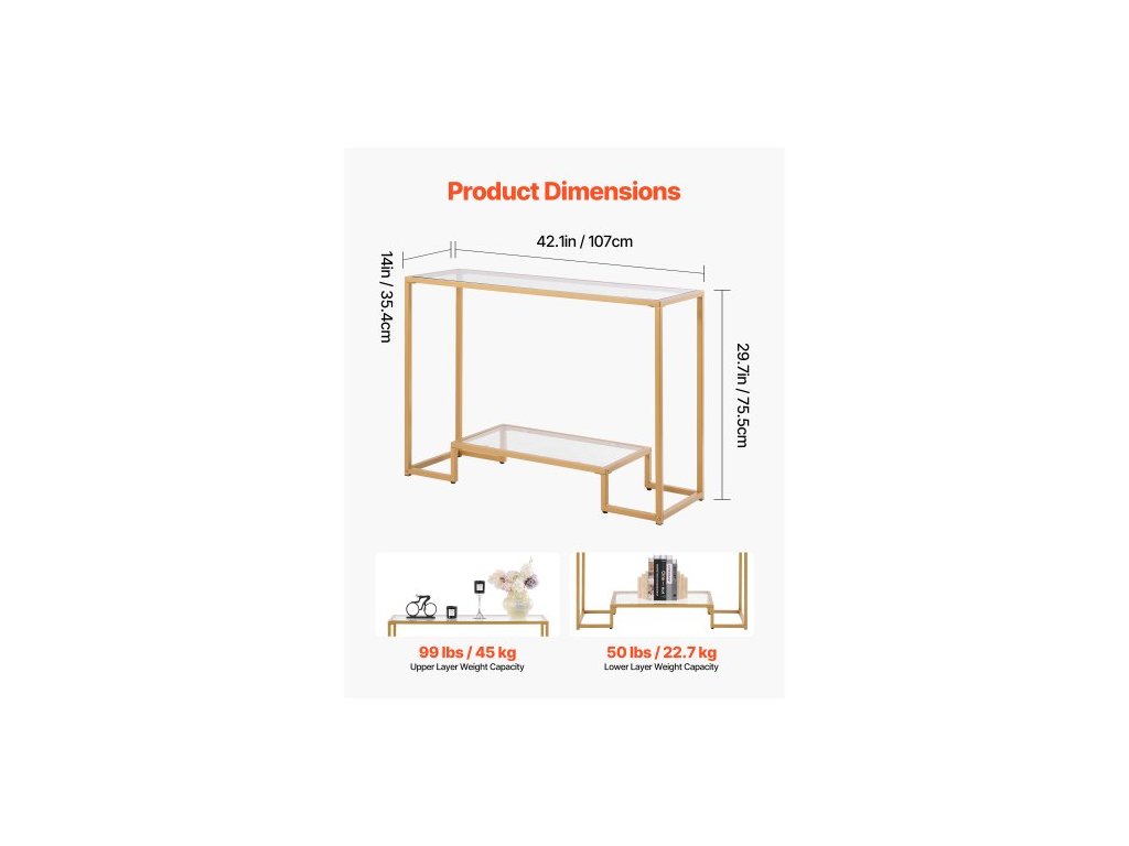 Počet úložných vrstev: 2 vrstvy, Nosnost horní vrstvy: 45 kg, Nosnost spodní vrstvy: 22,7 kg, Číslo modelu položky: YJX-XGZ-005, Materiál: Železná trubka (Q195) + sklo, Rozměry výrobku: 107 x 35,4 x 75,5 cm, Čistá hmotnost: 10,6 kg